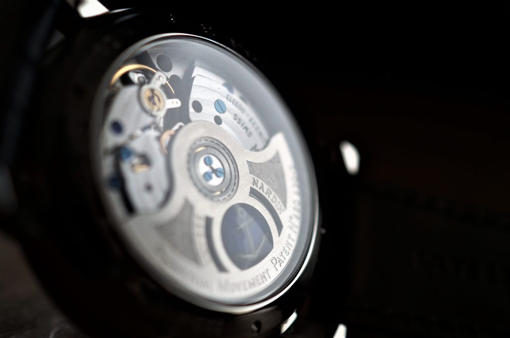 The movement is lovely, highly decorated with circular Côtes de Genève motif. There are also numerous blue screws along the bridges and the oscillating mass features UN’s logo in blue. There are 34 jewels in the movement and the power reserve maxes out at 48 hours but still, this is very impressive considering the complications involved.