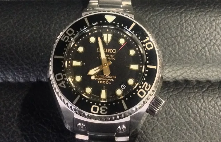 Shape wise, the SBEX001 is similar to the 300 Marinemaster. It has a monocoque case i.e. the insides can only be accessed via one major opening through the dial side. The screw-down crown is located at the 4 o’clock position. There is a date window and time is shown via a three hand system. Apart from these similarities, the two watches are different like night and day.
