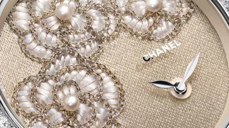 To design and craft this beauty of a timepiece, Chanel worked closely with Maison Lesage, a company now part of the Chanel group via a company called Paraffection. Maison Lesage was founded by François Lesage, a Frenchman who was very well known for making embroidered items of the highest quality, nowadays the archives of Maison Lesage contain over 75,000 examples of work, making it the largest collection of haute coutre embroidery in the world. This hard work and effort can be recognised and appreciated on the dial of the Chanel Mademoiselle Privé watch which has a hand embroidered beige coloured dial. The inspiration for the flower motifs located on the dial comes from Coco Chanel’s favourite flower, the camellia. The flowers have been ever so carefully designed and made with both chain and knotted stitching as well as a wondrous natural pearl in the centre.
