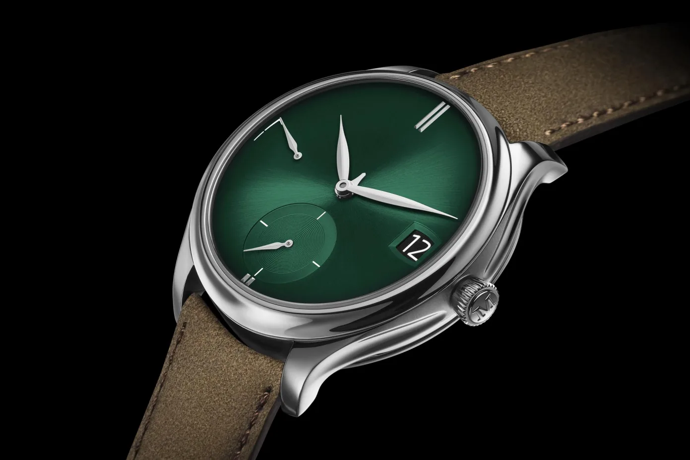 As for cosmic green fumé color, it first appeared on the Venturer Small Seconds XL Purity model back in 2017. The color is amazing, subtle yet full of personality. It also features a sunburst pattern with a fumé effect resulting to a lighter tone that emanates from the center towards the outer edges of the dial. We have seen this effect too many times with blue sunburst dials but the green on the new Purity model is truly unique. Moreover, there are only two indices on the dial, at 12:00 and 6:00. Seriously if you own one too many watches, you really need no lines at all. The tapered, leaf-shaped hands look sharp and the date window looks superb.