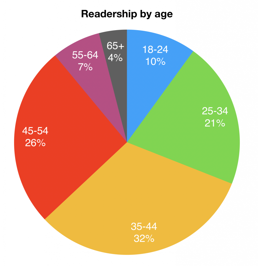 We also resonate well with the younger to middle-aged audience members, too. Our statistics show us that the most popular age group for WristReview visitors is between 35 and 44 years old. Here’s the full chart: