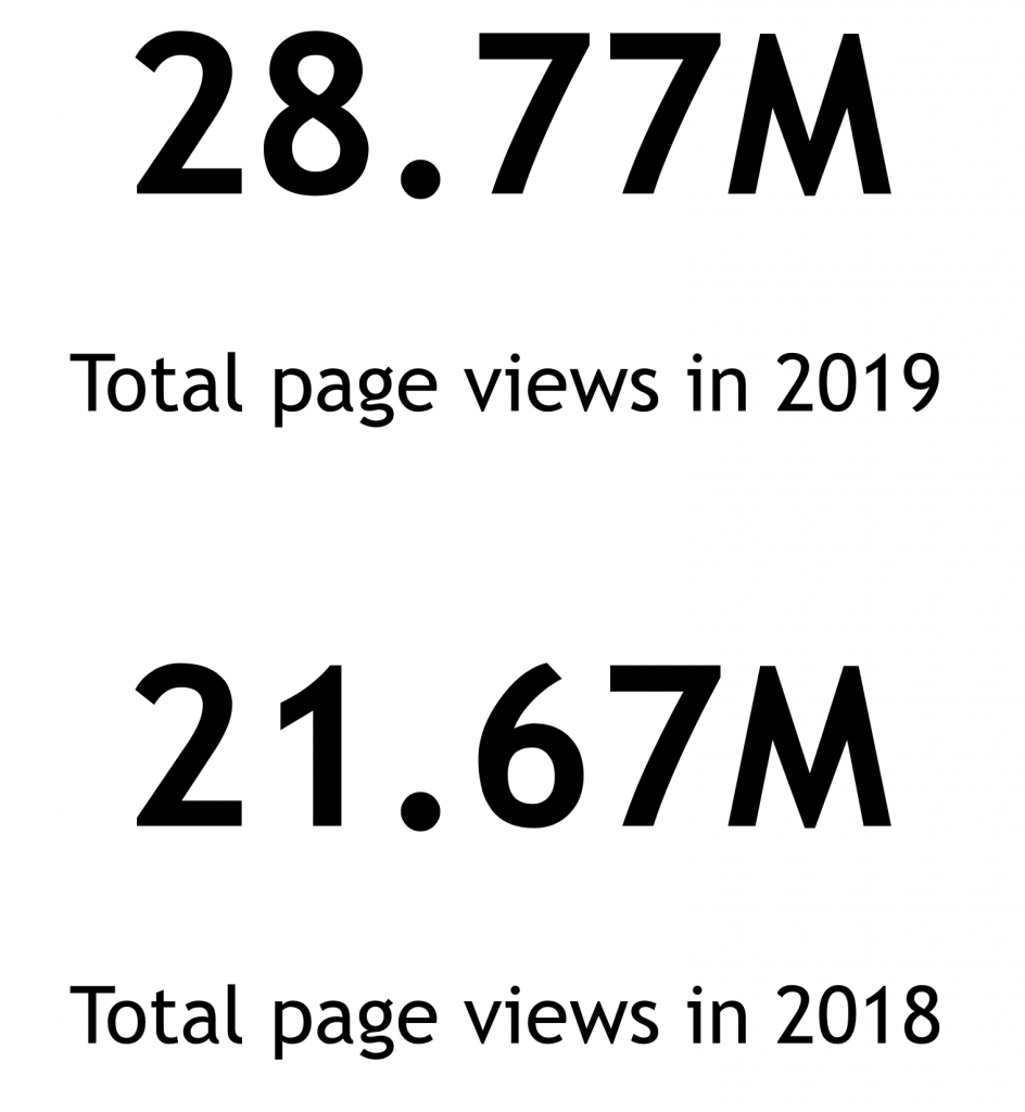 For WristReview, 2019 was statistically our best year on record, beating out our numbers for 2018 quite nicely. For our website, we look at the number of page views and the number of visitors. Overall, we received a staggering 28,773,891 page views from a fantastic 10,587,643 visitors! This means that each unique visitor looks at roughly three pages on the site.
