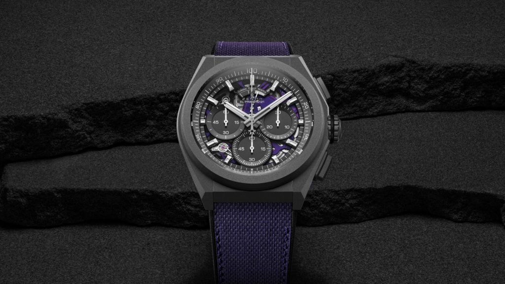 The Zenith Defy 21 Ultraviolet would come attached to a rubber strap with a violet-colored upper layer and would retail for CHF 13,400.