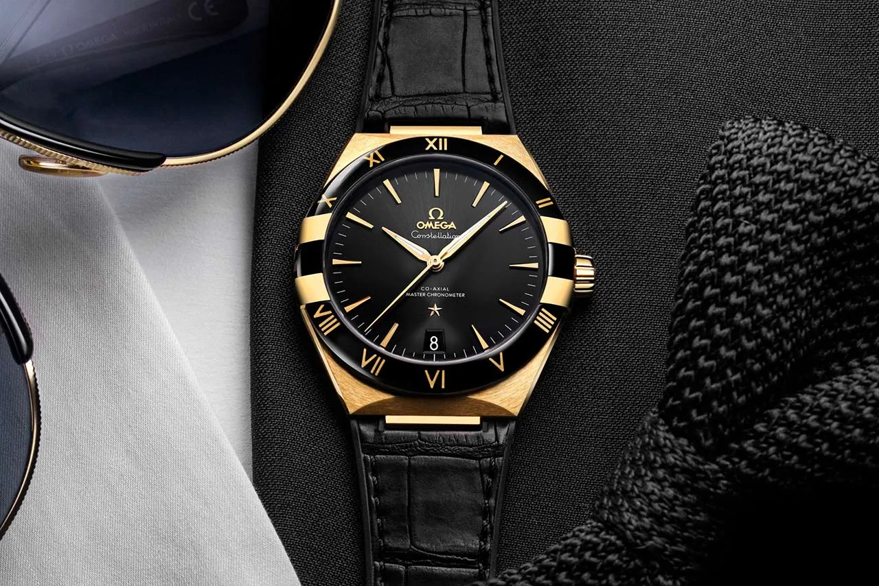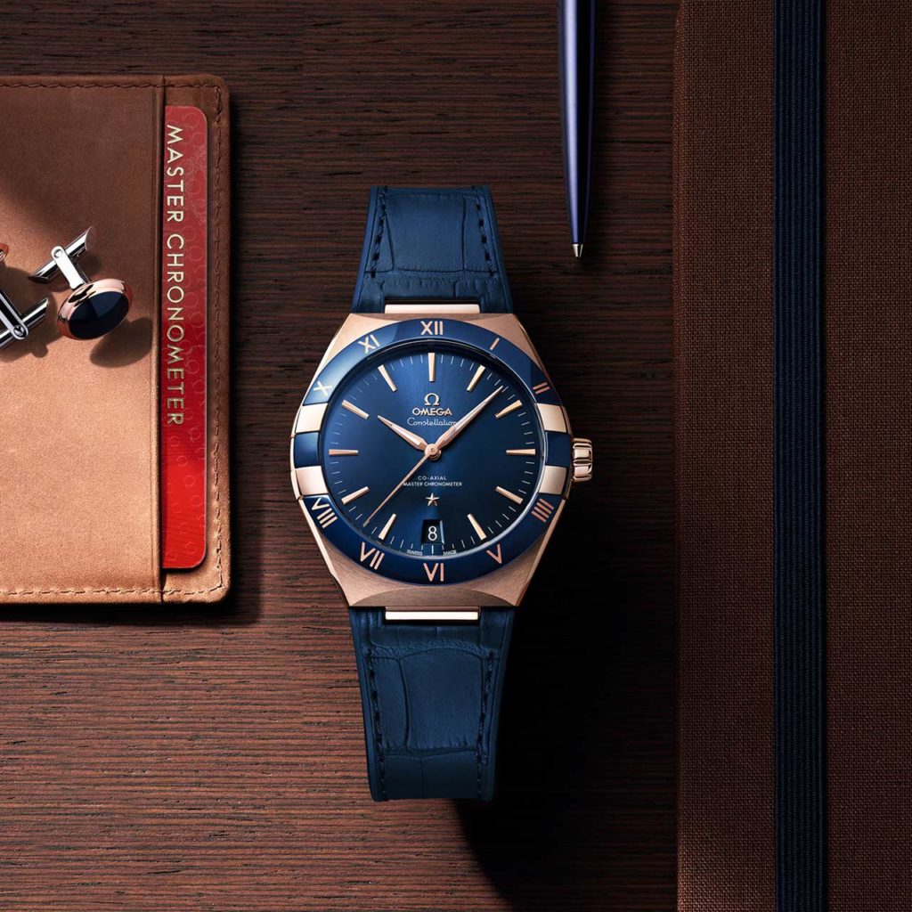 Omega is introducing no less than eight different variations of the Constellation, seven of which have what is undoubtedly the most striking change applied to them: a ceramic bezel. Coming in either black or blue, depending on the dial, the ceramic bezel uses Omega’s proprietary metallurgy technology that forces the metal inlaid into the grooves of the ceramic bezel to fuse to become one single piece. Depending on its application, it’s either known as Liquidmetal or Ceragold and relies on high temperatures and pressures to work, but it makes for an immaculate finish.