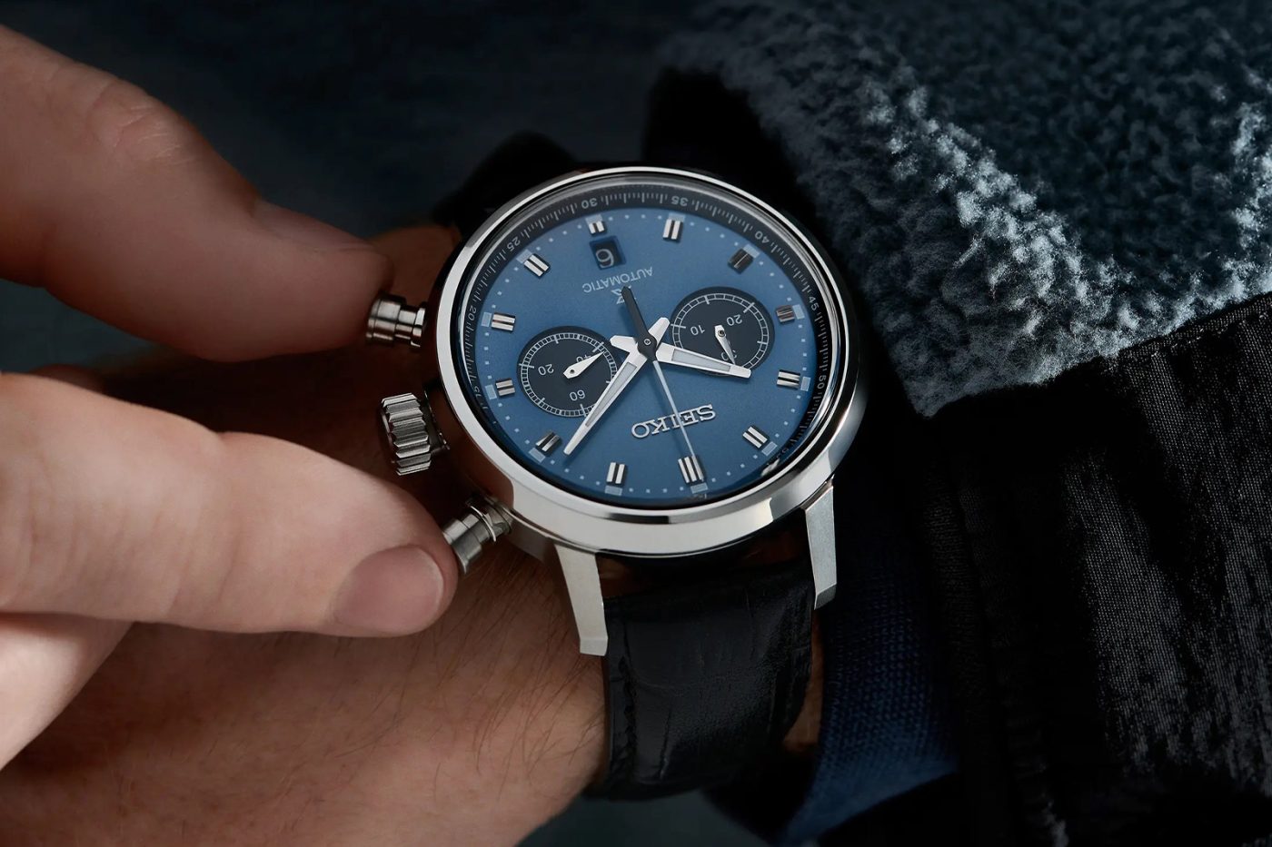 The new Seiko Prospex Speedtimer SRQ0391J1 retails for EUR 3,000 and is accompanied by a blue crocodile leather strap.