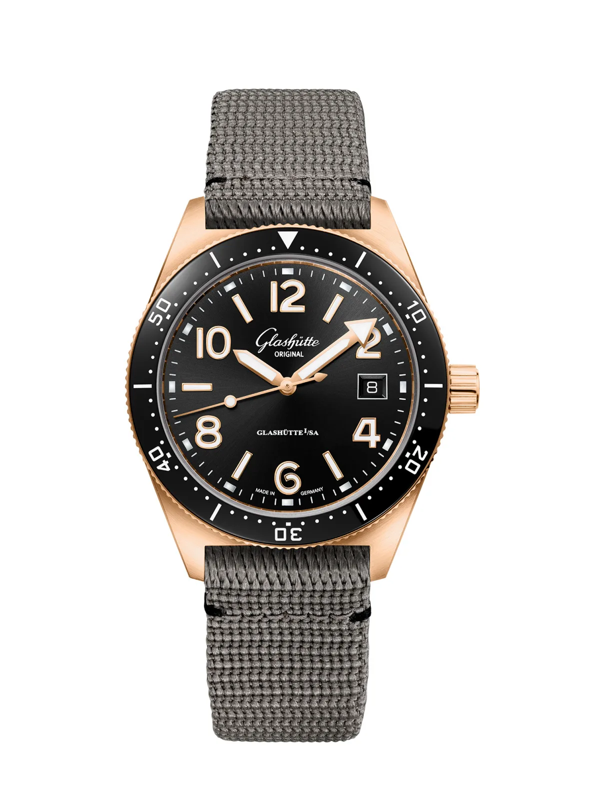 The new Glashütte Original SeaQ Red Gold can be purchased on either a grey synthetic strap or a black rubber strap for EUR 23,000.