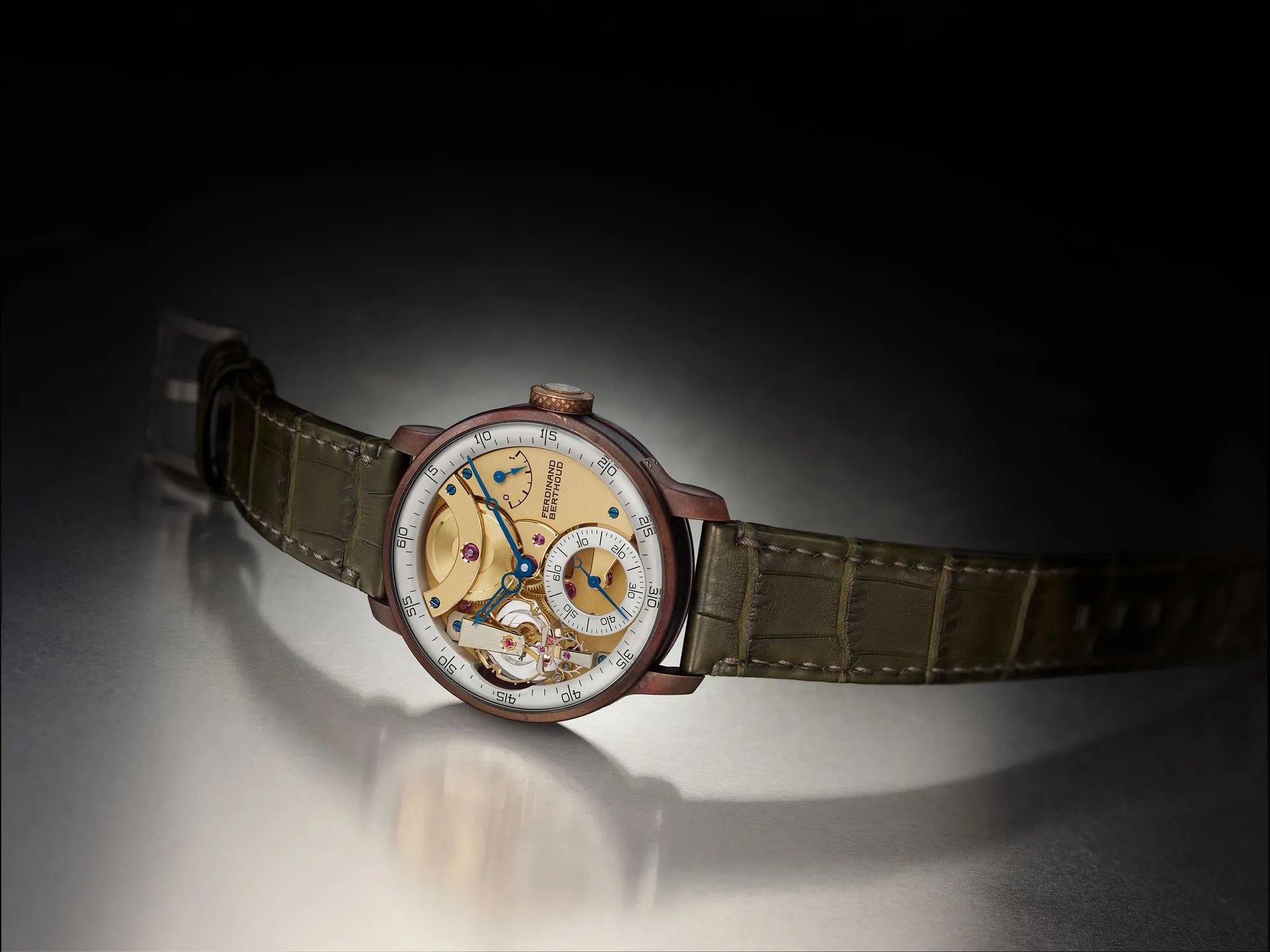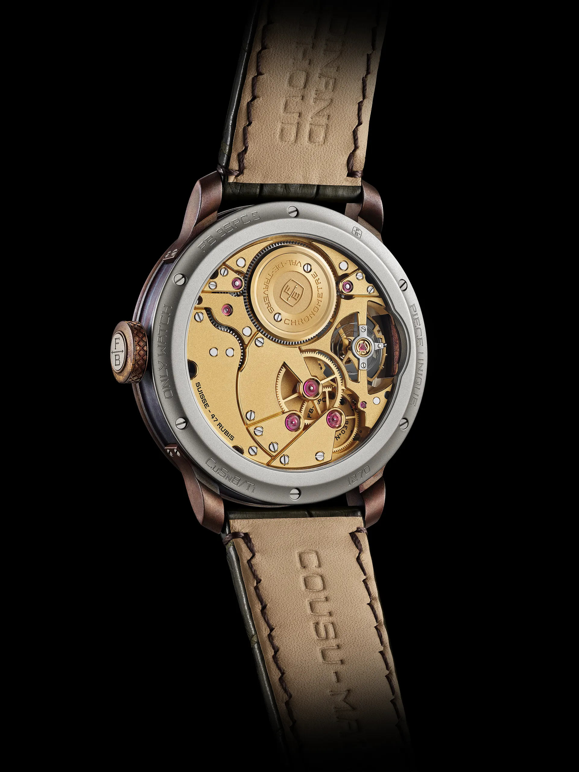 The different hues of the bronze case are utterly exquisite. But what’s more exquisite is the FB-SPC calibre inside it. It’s hand-wound with a 72-hour power reserve and a 3Hz beat rate. The finishing and level of depth on it is extraordinary too, but the horology is once again the star of the show. The watch has a cylindrical balance spring, which works similarly to the flat hairspring of regular watches. The idea is that by developing the spring into a cylinder shape it exerts less force on the pivot points at either end of the spring, which reduces the risk of errors and therefore improves accuracy. This technology was introduced by English Watchmaker John Arnold over 250 years ago, but was mostly used in chronometers due to its complexity and the extreme difficulty in producing it. Ferdinand Berthoud claims that their FB-SPC is currently the only calibre with a cylinder hairspring that is COSC certified.