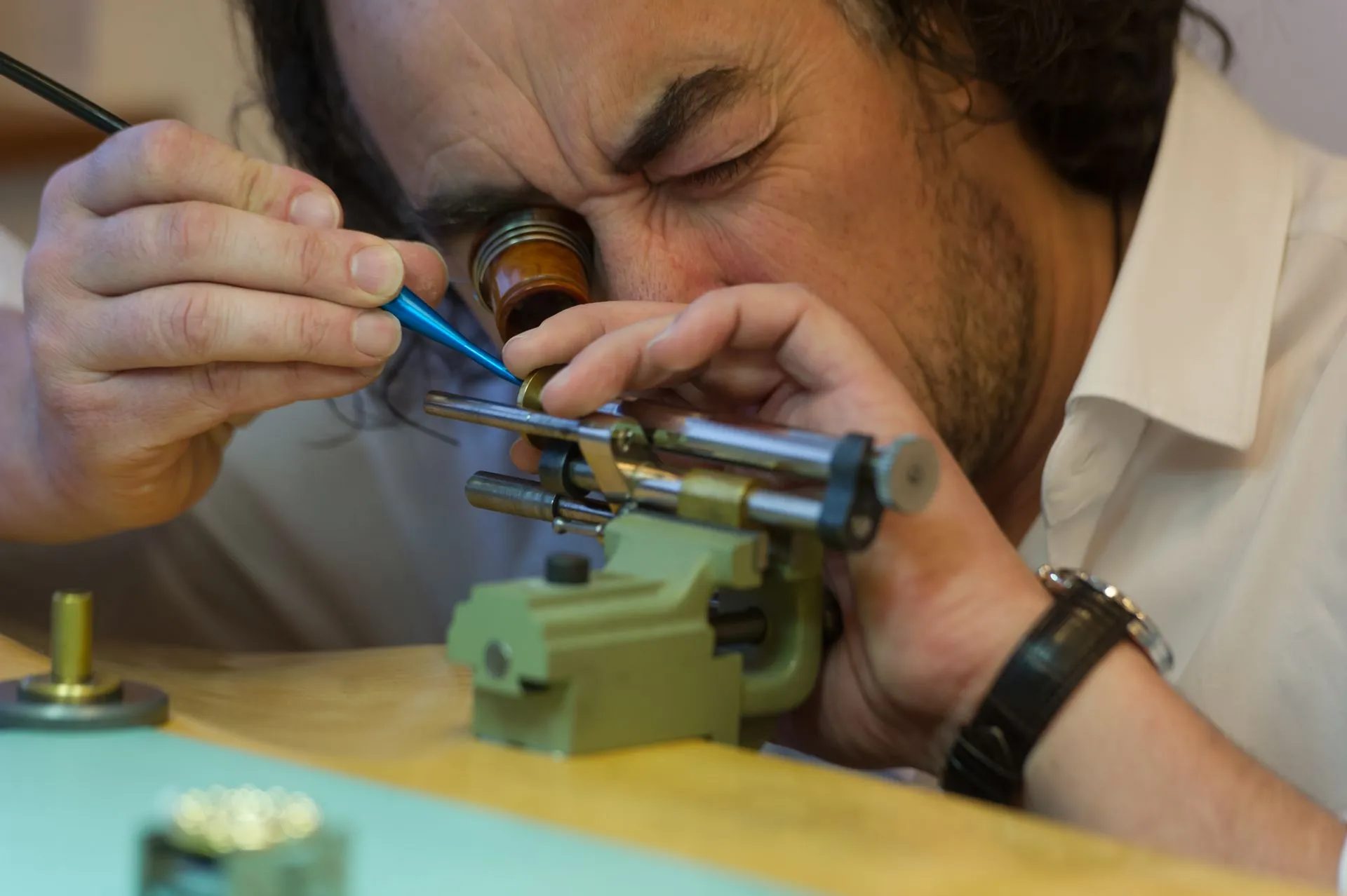 The dial is where Brittany Nicole Cox’s enchanting guilloché artistry takes center stage. A fine silver dial, colored in a deep sapphire blue, hosts a hand-guilloché pattern depicting birds in flight. This intricate design, inspired by Emily Dickinson’s poignant poem “Hope is the thing with feathers”, encapsulates optimism, resilience, and the power of giving. The dynamic arrangement of cuts and facets captures the essence of flight, symbolizing the spirit’s ability to soar even in challenging times.