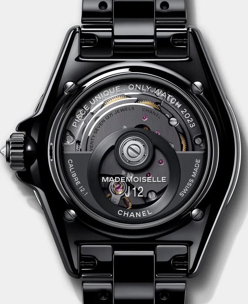 Inside the ceramic cases, of which black and white are on offer, is the self-winding calibre 12.1 which is made by Kenissi, which Chanel co-owns.