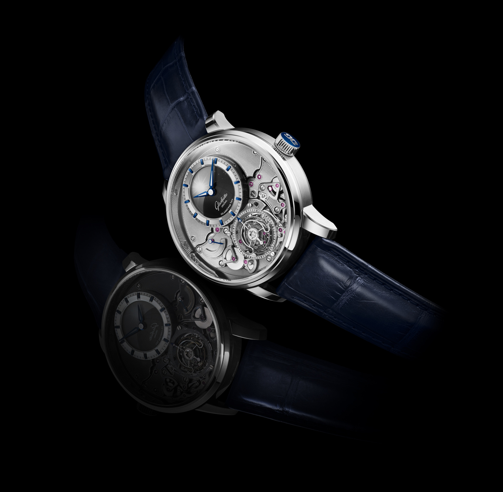 Underneath the dial lies the manual winding Calibre 58-06, operating at 21,600 vibrations per hour and boasting a 70-hour power reserve, visible through the front of the case. This transparency allows enthusiasts to admire the intricate Flyback Tourbillon mechanism and its control mechanism, showcasing the brand’s engineering prowess. Each watch undergoes a rigorous examination by the Thuringian Weights and Measures Office to ensure it meets the DIN 8319 official chronometer standard.