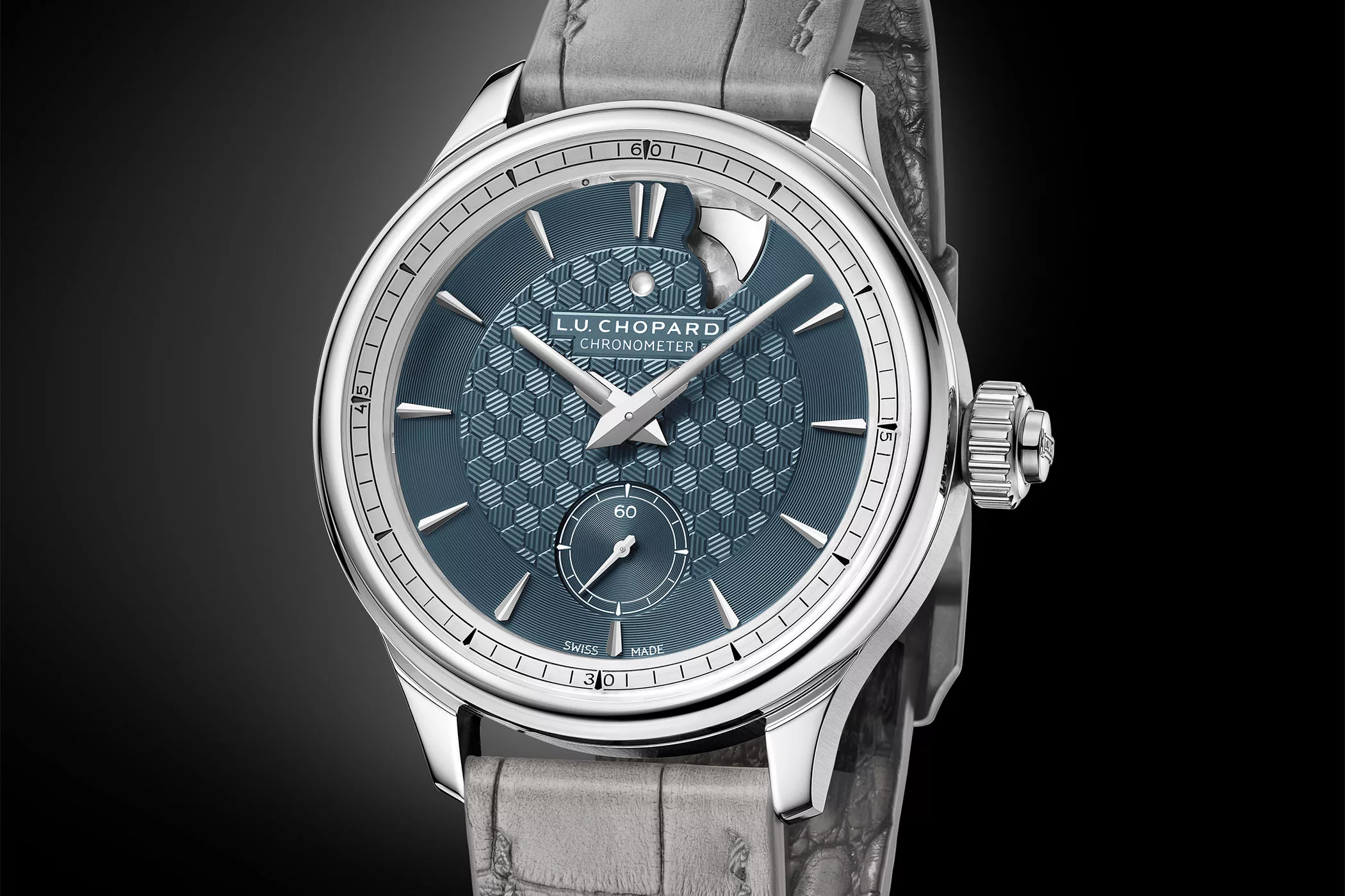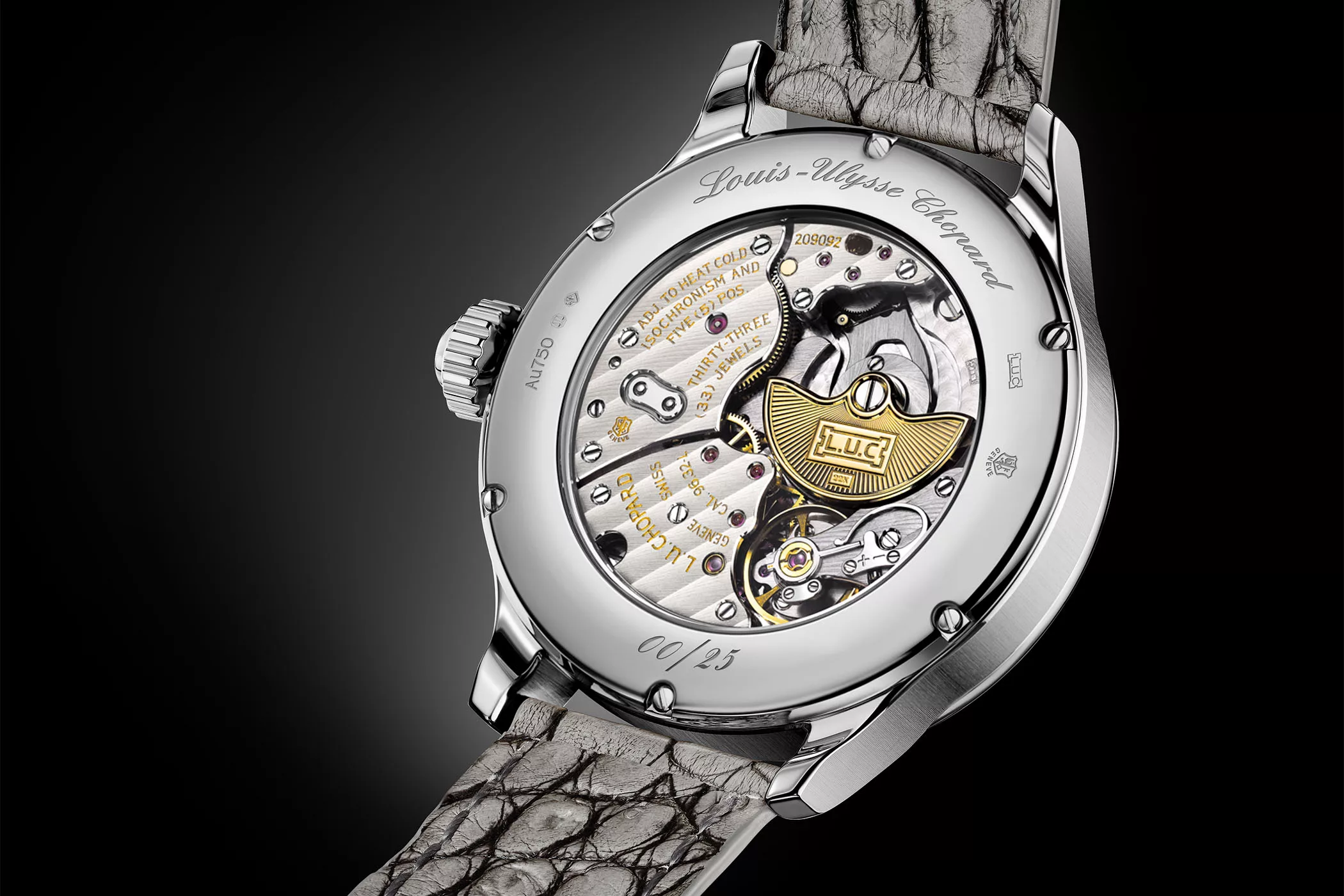 Sounds simple enough (it’s not), but some extra complexity is thrown in by the pusher hidden within the crown. For those of you with a good memory, or quite possibly those of you scouring Chrono24 for one of these, you’ll note that the pusher used to be at about 10 O’clock on the case but has now migrated to within the crown. That’s more complex than it sounds. The pusher itself silences the striking mechanism, and you can see whether it’s in striking mode or not by looking at the tiny circular cutout just above the L.U.Chopard logo on the dial. The striking mechanism has also changed slightly; the gong is now sapphire crystal and uses the watch’s crystal to amplify the sound further. This technology was developed on the L.U.C Full Strike, and it’s nice to see it used here.