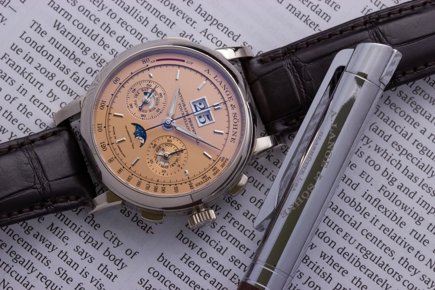 However, there again lies the beauty of this watch in that it’s totally approachable, you can wear this on the wrist, and it’s comfy, it gives you confidence. Now, how much of that confidence comes from wearing a certifiable grail watch I’m not sure, and I don’t really want to find out either. Part of that reason stems from the salmon coloured dial. A new trend that A. Lange & Söhne has run along with. The dial is solid pink gold, and the colour makes it just right with the skin tone of my wrist, that’s important for me as the wearer as it makes the watch look more at home when worn as it blends in better. Could salmon dials replace white dials on dressy watches?