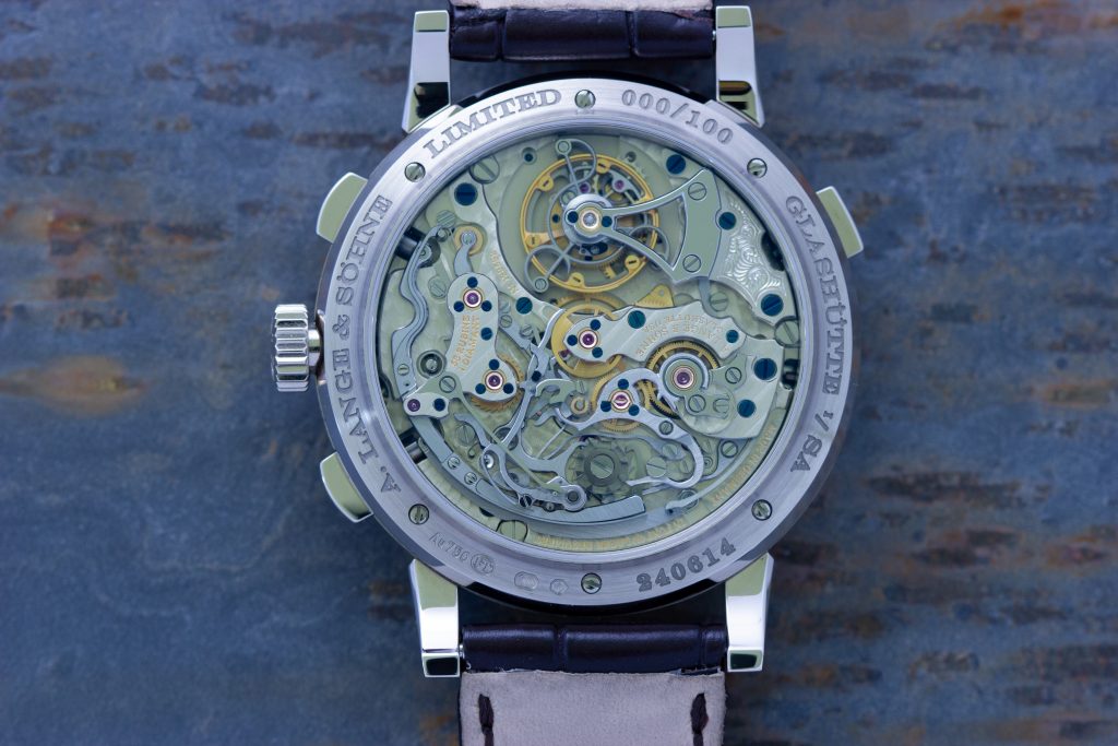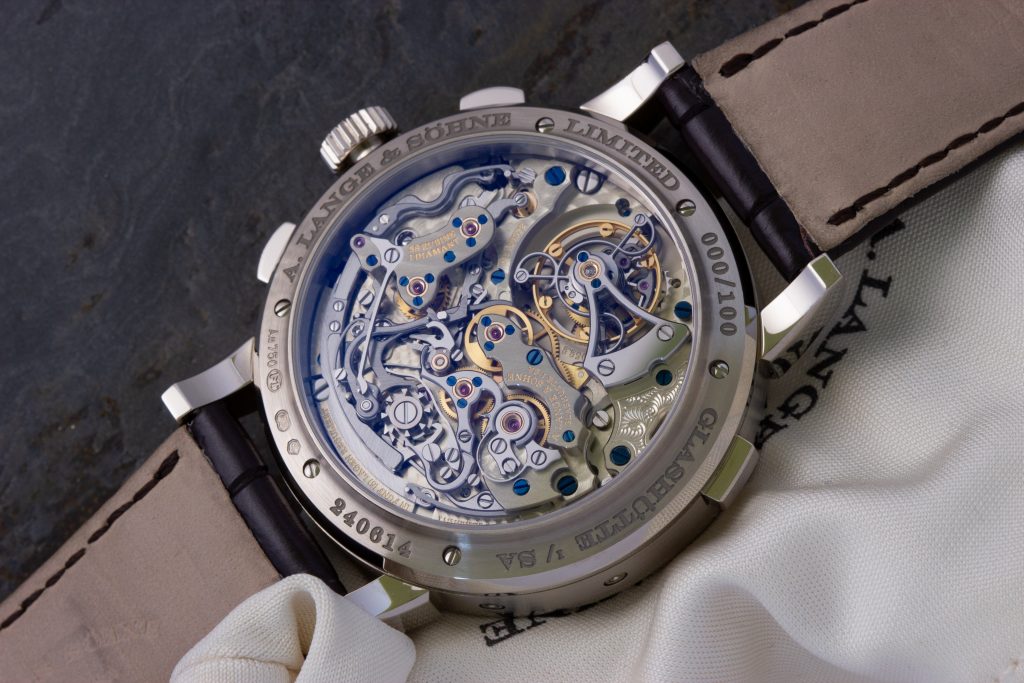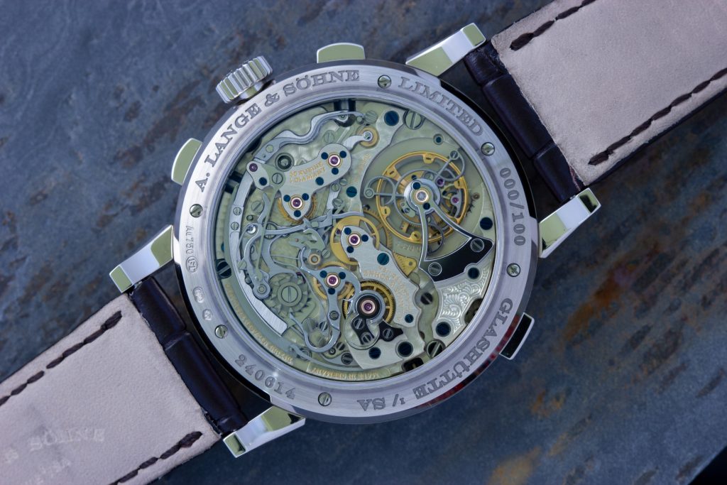 As I have mentioned already, complicated watches from A. Lange & Söhne are generally larger than their equally complicated Swiss counterparts, but that is not necessarily a bad thing. In this case, it allows room for the large and decadent movement which is on display to the rear of the watch. The calibre L952.2 is astonishing to look at. You take one look at the back of this watch and suddenly remember why it is you’re into watches in the first place. It’s like a little city in there!