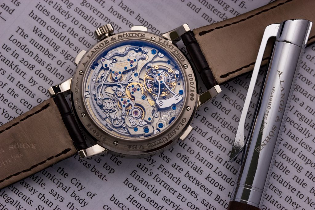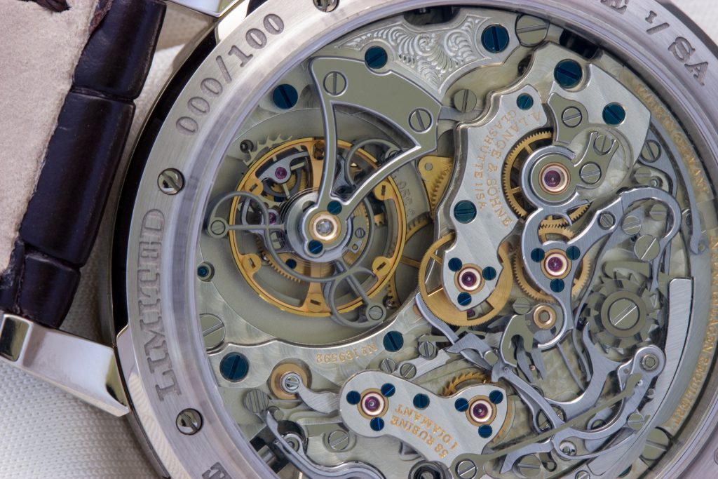 This watch isn’t all show either, despite its fantastic level of finishing. The chronograph displays time with an accuracy of one-fifth of a second, which corresponds to the beat rate of the balance wheel inside the tourbillon (2.5Hz, the first time in a Lange tourbillon watch). The movement also features a power reserve which was missing from the pedestrian non-tourbillon Datograph, okay, maybe that was a bit harsh. It has a diamond endstone in the tourbillon though, which is pretty rare.