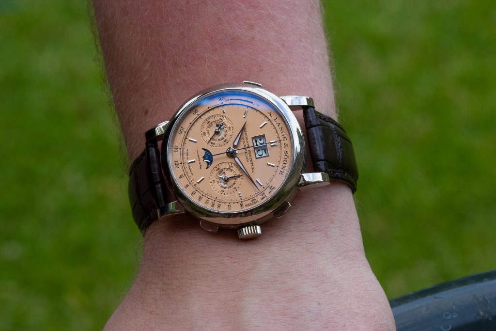 However, there again lies the beauty of this watch in that it’s totally approachable, you can wear this on the wrist, and it’s comfy, it gives you confidence. Now, how much of that confidence comes from wearing a certifiable grail watch I’m not sure, and I don’t really want to find out either. Part of that reason stems from the salmon coloured dial. A new trend that A. Lange & Söhne has run along with. The dial is solid pink gold, and the colour makes it just right with the skin tone of my wrist, that’s important for me as the wearer as it makes the watch look more at home when worn as it blends in better. Could salmon dials replace white dials on dressy watches?