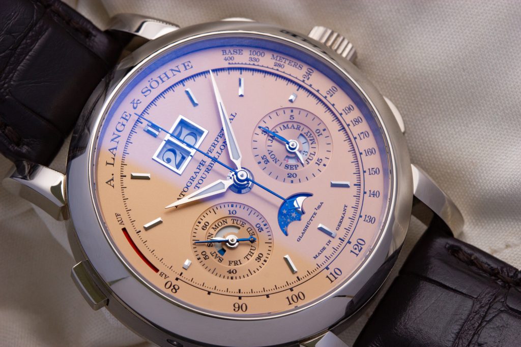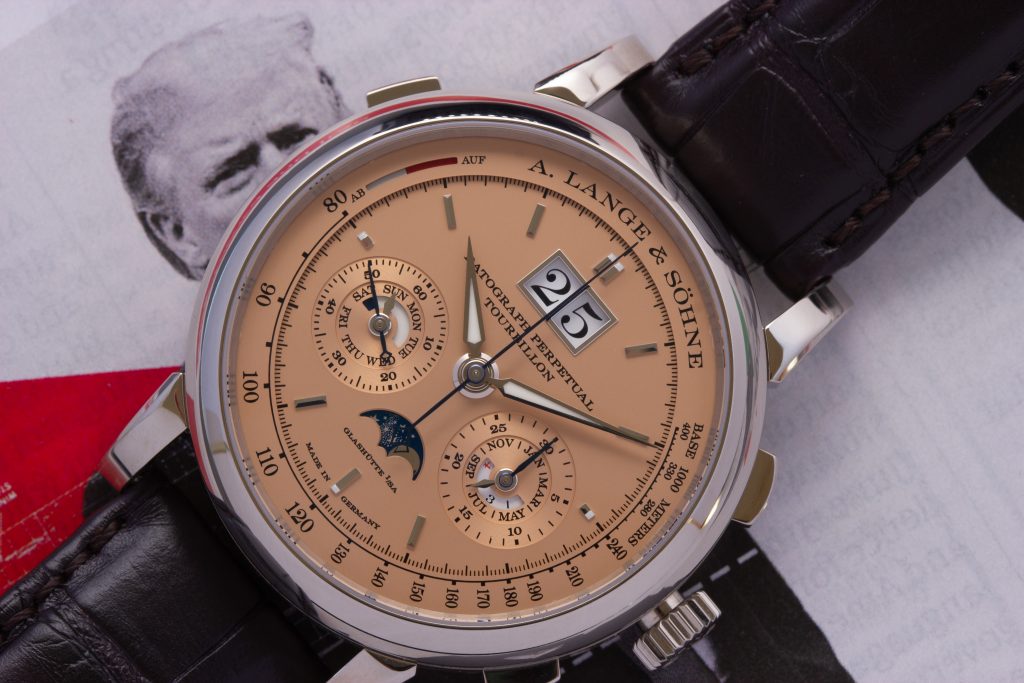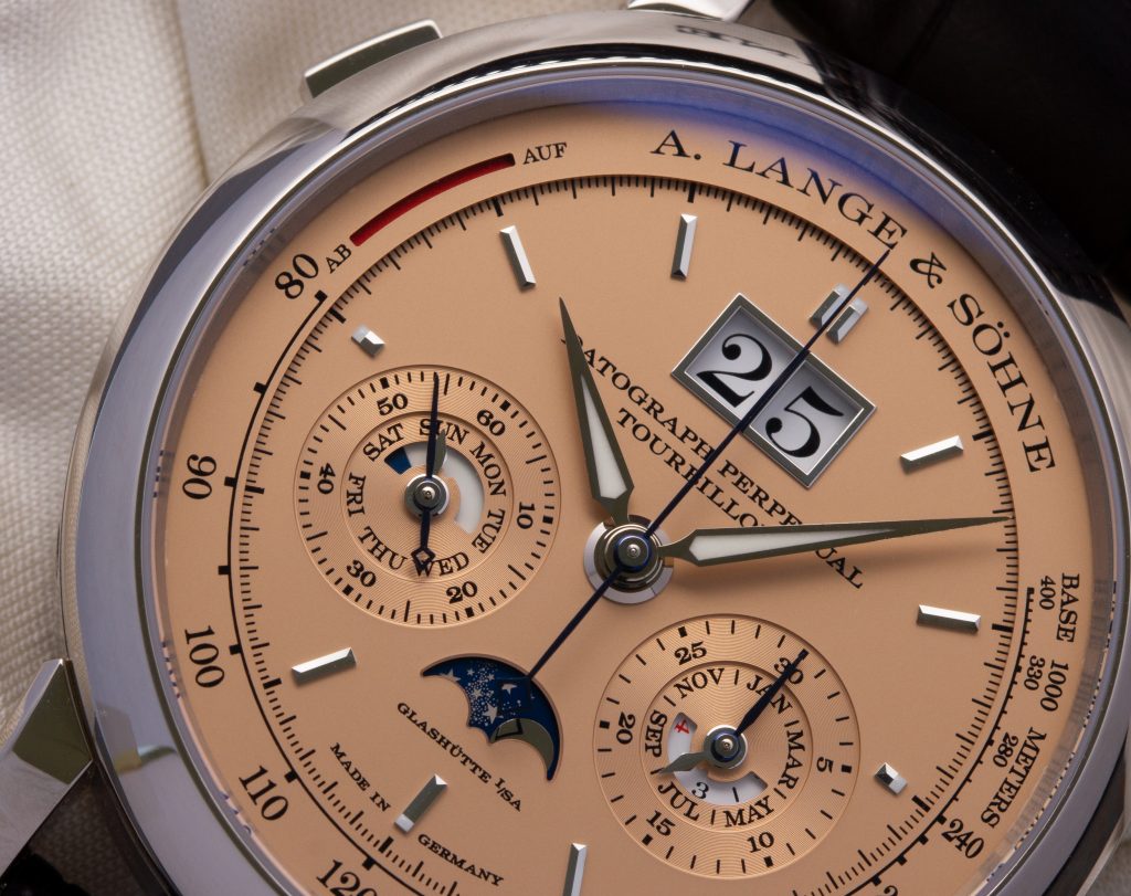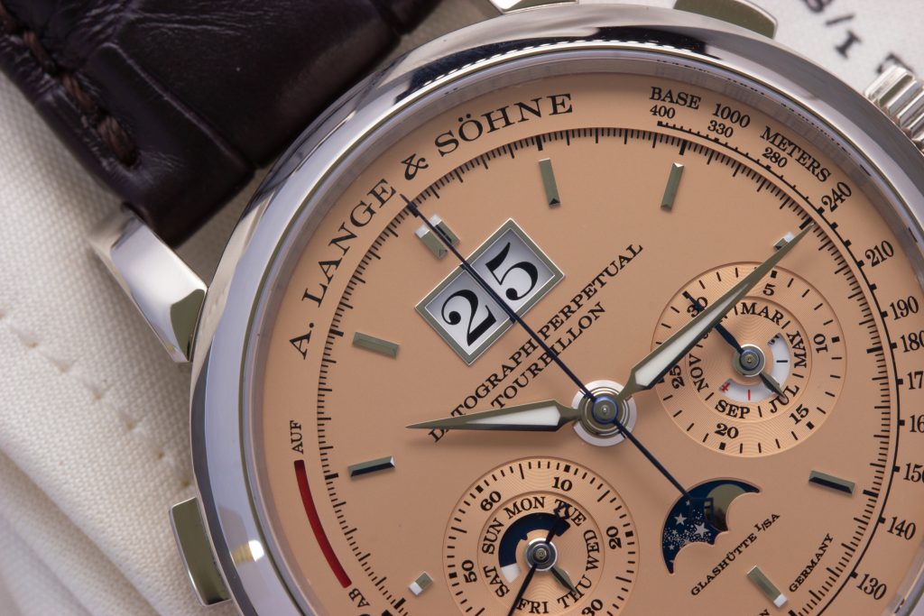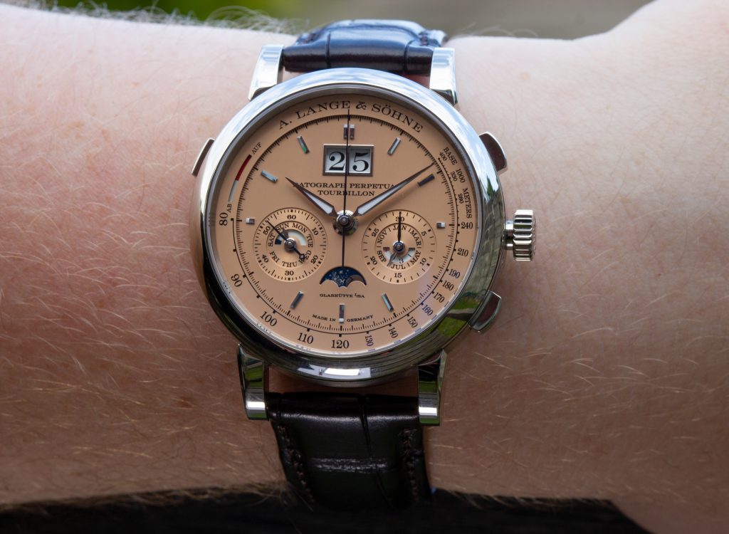The legibility of this watch is, I’d say, good, especially for the type of watch that this is. The actual time reading is easy as on any other watch, and the chronograph only has two hands, reading the date is easy too, thanks to A. Lange & Söhne’s classic Outsize Date which appears near the twelve O’clock position. The Datograph Perpetual Tourbillon uses a slightly different method for indicating the calendar. They must have been reading our work as a small gripe from the Masthead in last year’s review of the Datograph Perpetual sans Tourbillon was that the small dials made it a little harder to read.