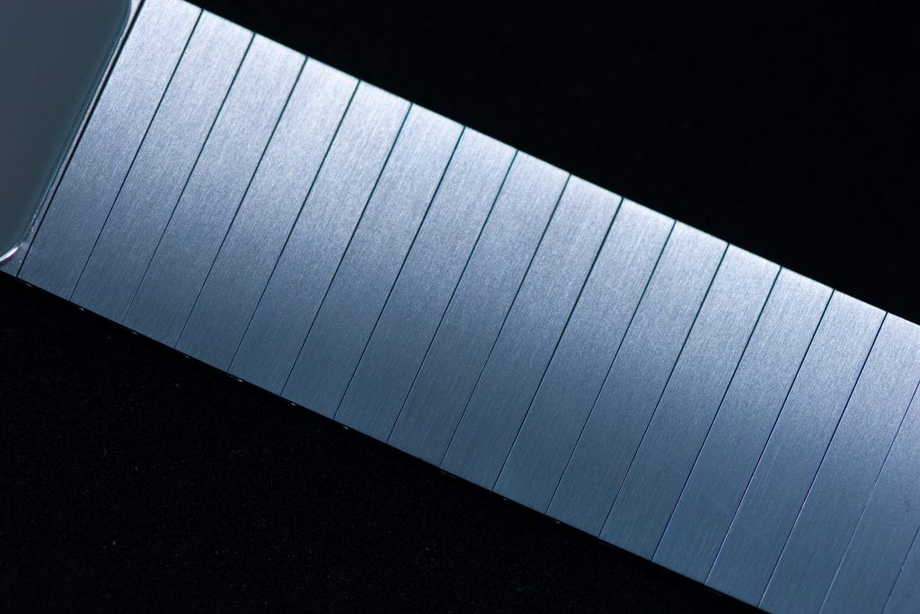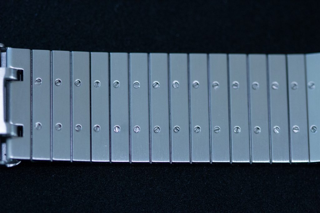 The bracelet is surprisingly sturdy. Featuring single flat links instead of the multilink design seen on nearly every other watch ever, this one stands out. When laid down flat all the links neatly come together as you can see in the photos. They are polished on the sides and held together with screws as well. My one slight gripe with this watch’s bracelet is that because the bracelet isn’t a multilink design, it tends to grab and pull on arm hairs. It’s not as bad as you’d think, only the odd occasion, but when you come from a watch that doesn’t tug on hairs at all, it’s noticeable. Some friends I showed it to also didn’t understand why the bracelet doesn’t connect to the case. I quite like it that way, and it makes it more like the leather straps which also don’t reach all the way in-between the lugs. It makes cleaning it up easier too.