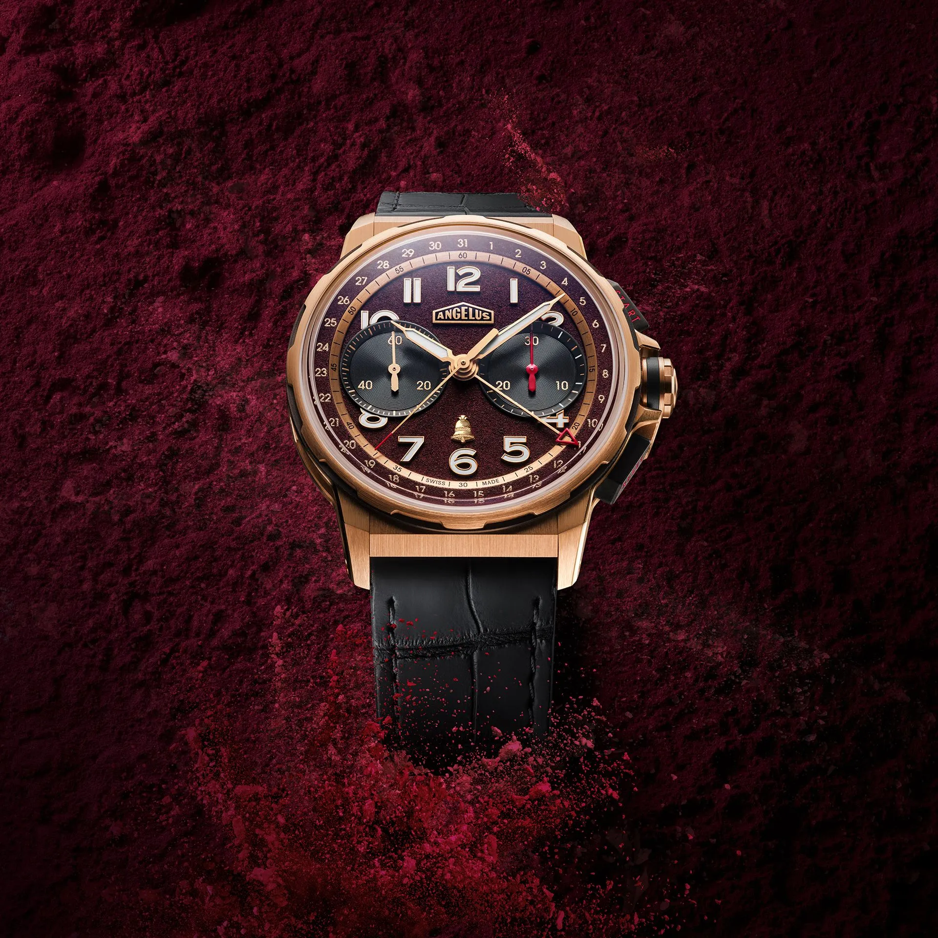 Angelus has paid tribute to the wine of Château Angelus in quite a unique way. They’ve used the lees from Château Angelus’ 2022 vintage as the dial. Lees can also be known as dregs, essentially, they’re the sediment left over in the bottom of a wine barrel and are usually made up of dead yeast cells among other things. I’ve seen weird things being used on watches before, but freeze-dried wine sediment is in the top 1% of weird things used to make dials.