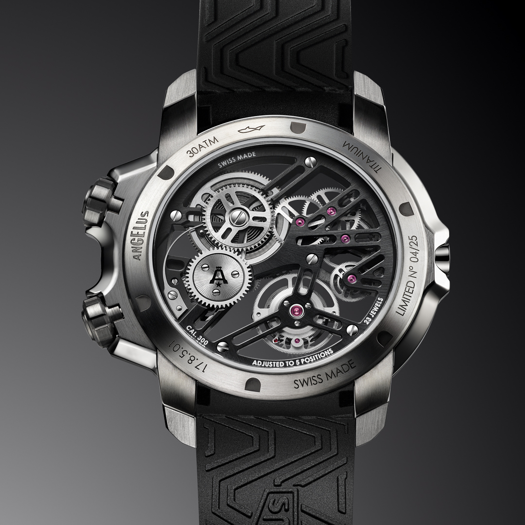 I doubt anyone at Angelus believes that any of their clientele will actually wear this whilst diving. The 300 meters water resistance will undoubtedly save the watch when a clumsy waiter knocks over your bottle of locally sourced, small-batch, gluten free water, but I think that’s the closest your standard U50 will get to diving throughout its life. For more info, visit Angelus Watches online.