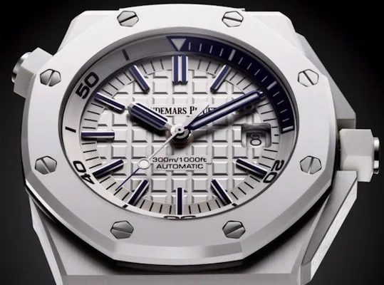 What better way to commemorate the winter season, especially here in the US where much of the country is being buffeted by the Polar Vortex, with a white watch. Audemars Piguet introduced a white ceramic model to the Royal Oak Offshore line for the 2014 line-up. The watch is done in “super ceramic,” a material that is claimed to be significantly harder than the previous ceramics used in the line. The white watch, strap and textured face, complemented with blue for the hands and markers, is quite a statement. For me, it looks like it would be more at home on the slopes than in the ocean, but at around $24,000 it is really going to be seen more in boardrooms and courtside at NBA games.
