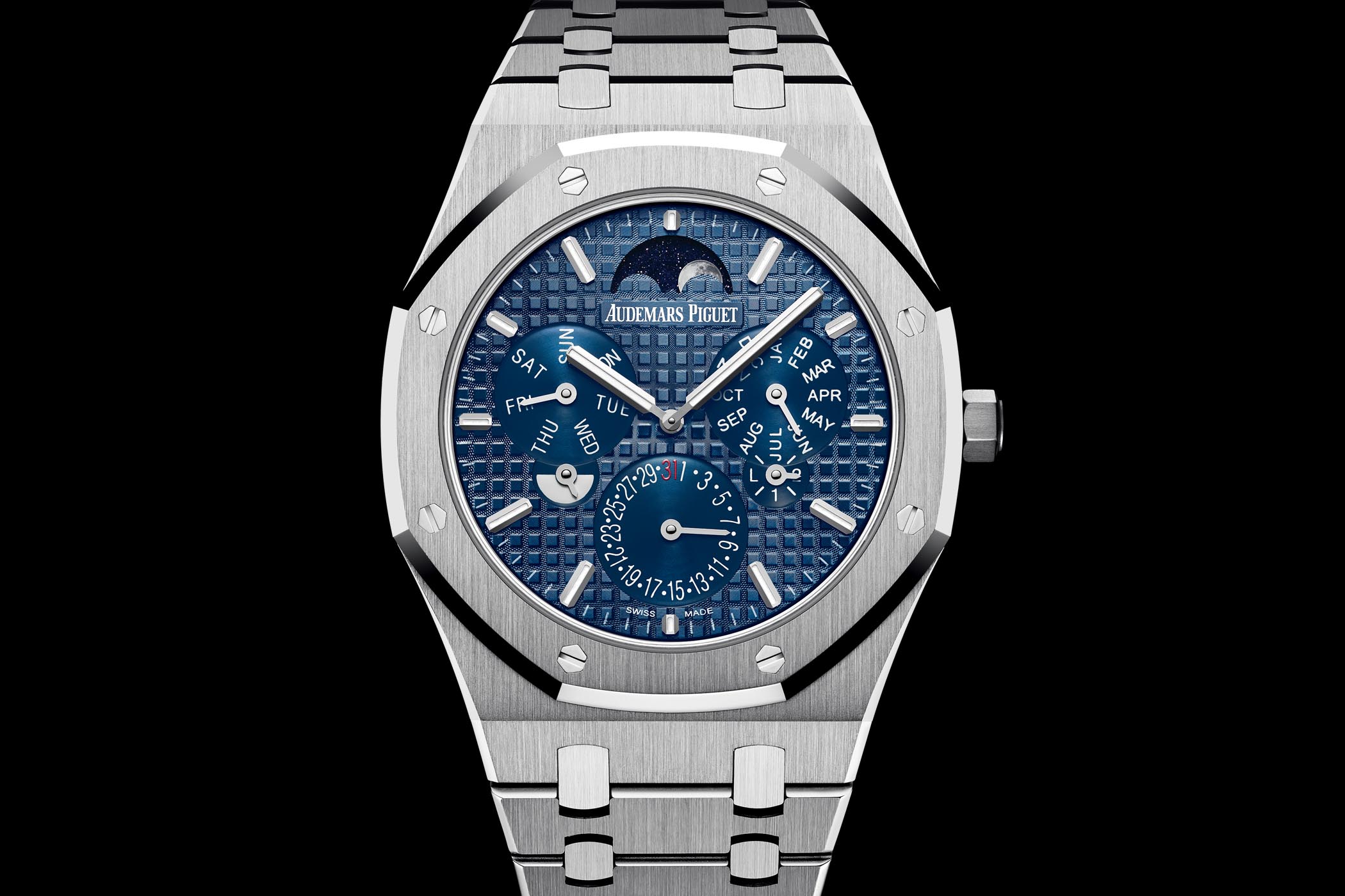 The new Audemars Piguet Royal Oak RD#2 Perpetual Calendar Ultra-Thin 26586PT is adorned with “Grande Tapisserie” guilloche pattern on its blue dial with excellent legibility. It also wears on a chain-like bracelet matching made of the same case material. Design-wise, it’s the same original concept just made ridiculously thinner. audemarspiguet.com