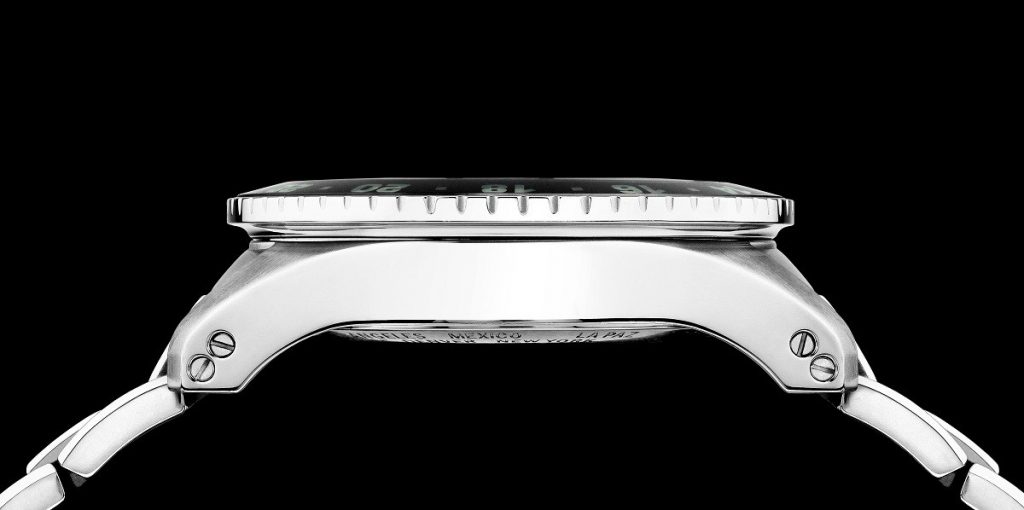 Moreover, the watch features 3-time zone GMT which is a classic take for this caliber. Where it truly catches the eye is on its curved external bezel with a green tritium gas tubes inlaid inside it which is pretty impressive to be honest. Right now, the brand also claims that this is the only watch in the industry featuring such tech on the bezel, I do not know about that but this is the first time I am seeing this stuff and it is very cool.