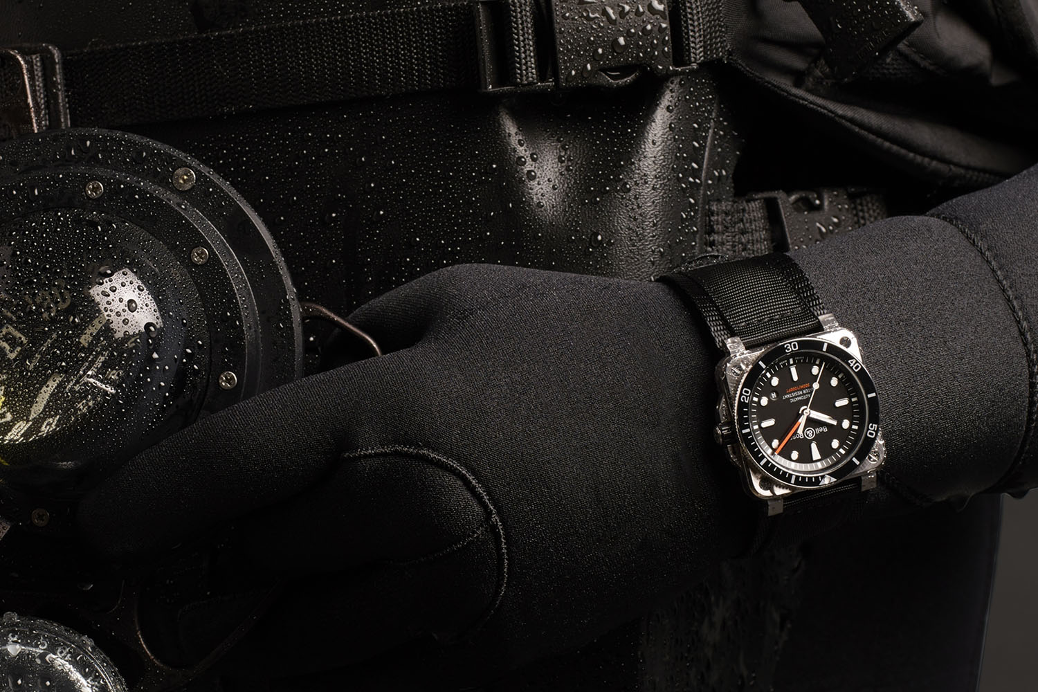 The price point of the BR03–92 Diver as of this writing is € 3.300 Euro. It comes in a water-resistant PELICAN® box which is a neat packaging gimmick. The watch is available in either woven black rubber strap with a steel pin buckle or in an ultra-resilient black synthetic fabric strap. They’re all easy to adjust over a diving suit but the last one is easier thanks to its Velcro closure system. For more info, please visit bellross.com