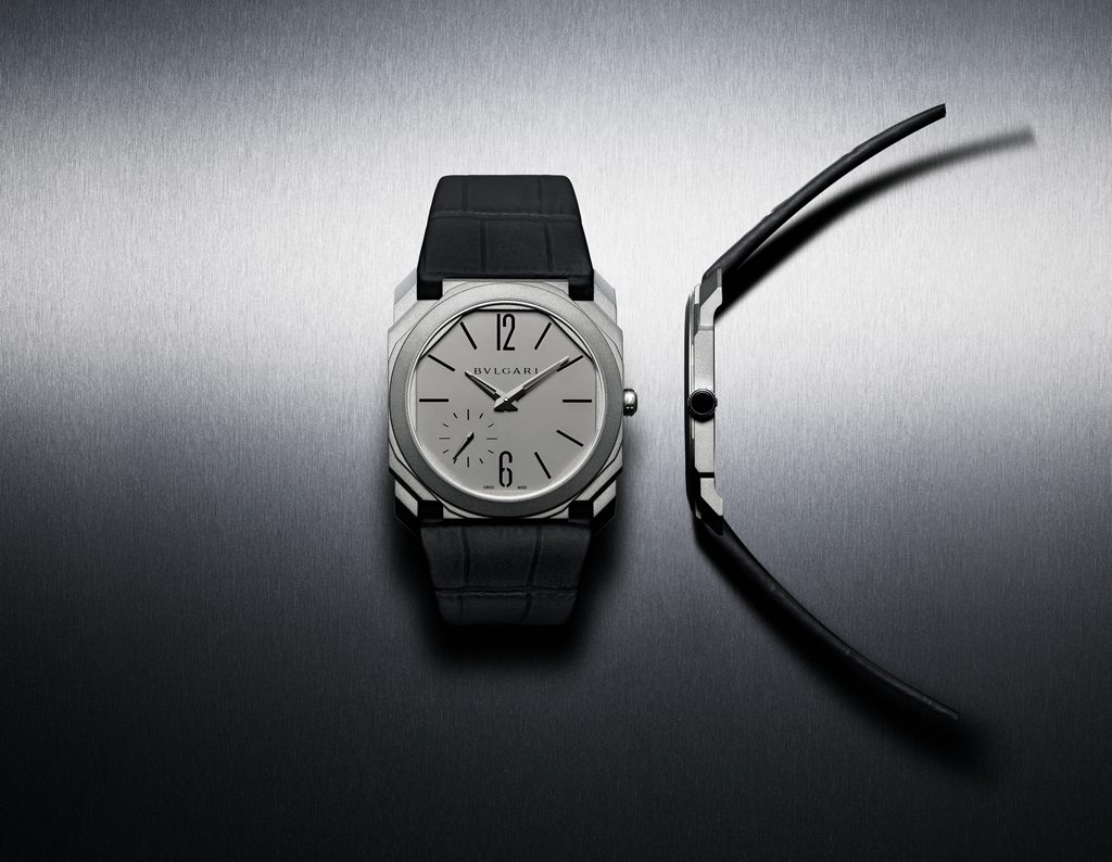 A world on records, at 2.23mm thick, the movement itself is thinner than Piaget’s ultra-thin self-winding calibre by 0.12mm, however Bulgari is still a way off of the Altiplano 900P (the world’s thinnest watch), so who knows. All cased up the Octo Finissimo Auto is 5.15mm thick, which is still staggeringly thin when you think it comes with the option of a metal bracelet.