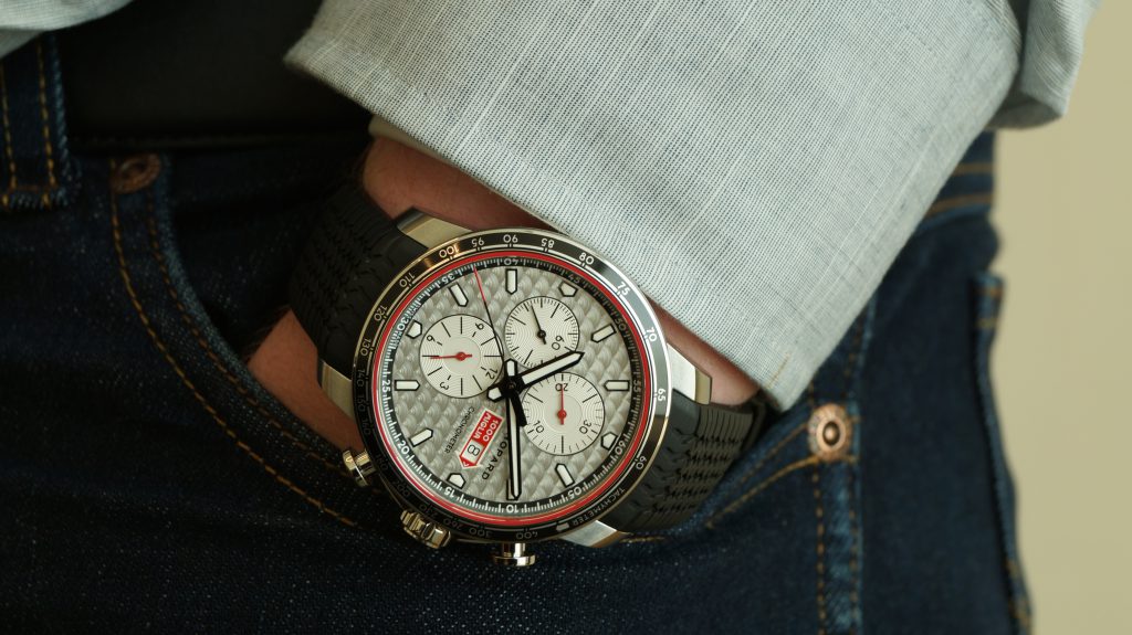 The best thing about old sports cars is that they perform while keeping their composure. If you look at modern cars of today, to get the highest performance variant of a model often means wings and splitters and alloys and laser guns and stuff need to be added to the car which can sometimes make it pretty ugly. Looking at older Alfa Romeos and Maseratis and such, these cars often won the Mille Miglia and other events with a lot of engine tuning inside and only a few racing stickers outside. This is why we think the Chopard Mille Miglia Race edition fits so well with the Mille Miglia, because it performs all the necessary functions of any chronograph watch while looking confident about itself. While the polished case sides and lugs might be prone to scratches if this is a daily wear, the pelage dial definitely balances it out. The red accents make it stand out during the day, and the lumed hands and indices make it stand out at night, it’s not only a cool watch but a petrolhead’s ideal timepiece. Shame it’s limited to 1000 pieces, but that just means you have to get in faster. For more info, please visit chopard.com