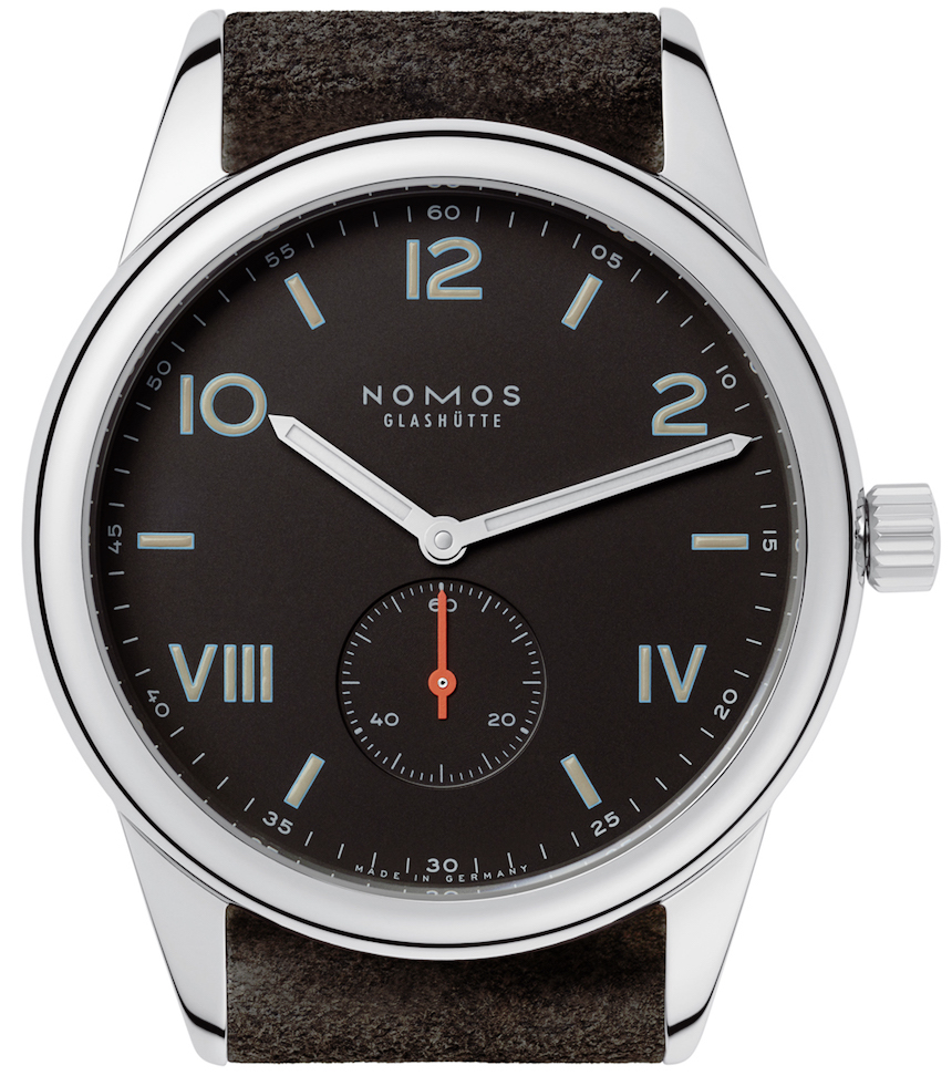 As an extra incentive, each of the three variations of Club Campus variations come standard with a standard anthracite strap, which complements each of the pieces very well. On each piece, the numerals two, 10, and 12 are visible, while time markers are left in place of the numbers one, three, five, seven, nine, and 11. Roman Numerals are used to mark the places of four and eight. There is no time marking at the number six, but instead, a seconds timing dial takes its place on the face of the piece. The Nomos logo can be found very visible just under 11, 12, and one o’clock. This is what is known as the “California Dial.”