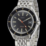 Constructed of sandblasted titanium, the new Bulgari looks very modern in its angular yet familiar squared case with a wide tapering bracelet. The grey on grey dial doesn’t do anything for legibility, but, who cares in this case, it could be made of discoloured gases, and we’d still love it (I’d like to see someone have a crack at doing that, just for a laugh).