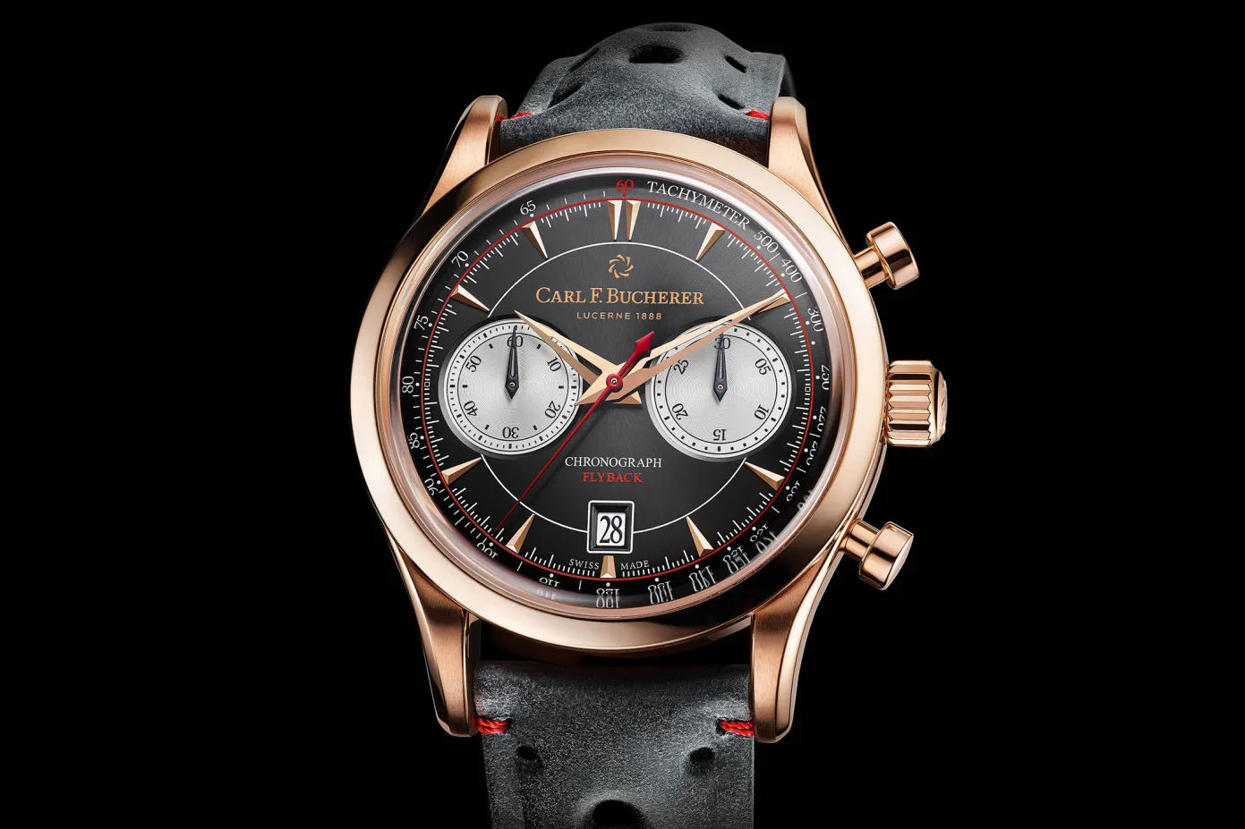 In all, the Carl F. Bucherer Bucherer Manero Flyback in pink gold is a great looking watch that showcases how a big a difference can a shift in material make to the overall aesthetic of a timepiece. The watch would come attached to a dark grey rally style aged, perforated leather strap and would retail at a price of CHF 16,900.