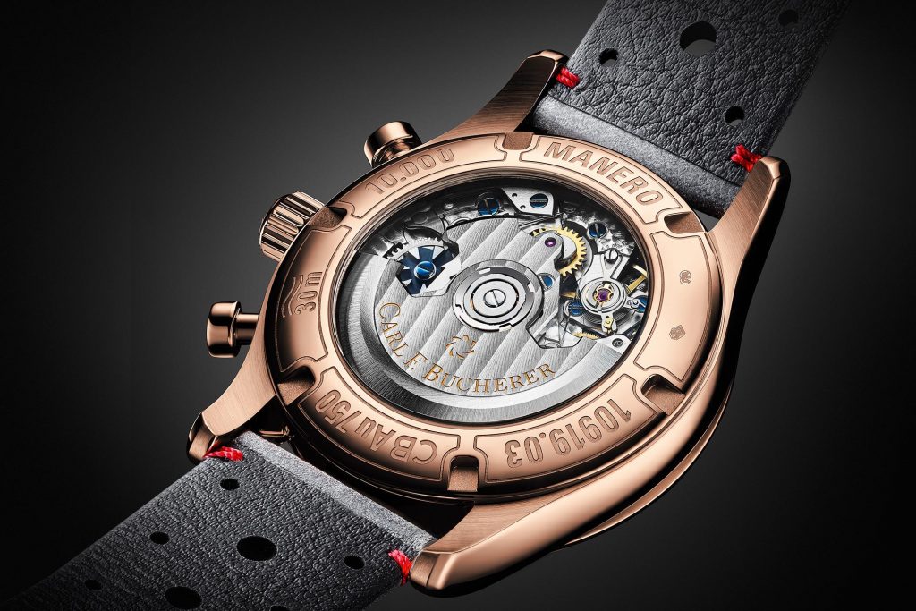 Powering the watch is Carl F. Bucherer’s automatic chronograph caliber CFB1970. This is an integrated chronograph movement which is based on the venerable Valjoux 7750 and has been modified by La Joux-Perret to add a column wheel mechanism and a flyback function. It operates at a frequency of 4 Hz and offers a power reserve of 42 hours. The movement has also been beautifully decorated and can be viewed in all its glory through the transparent case back.