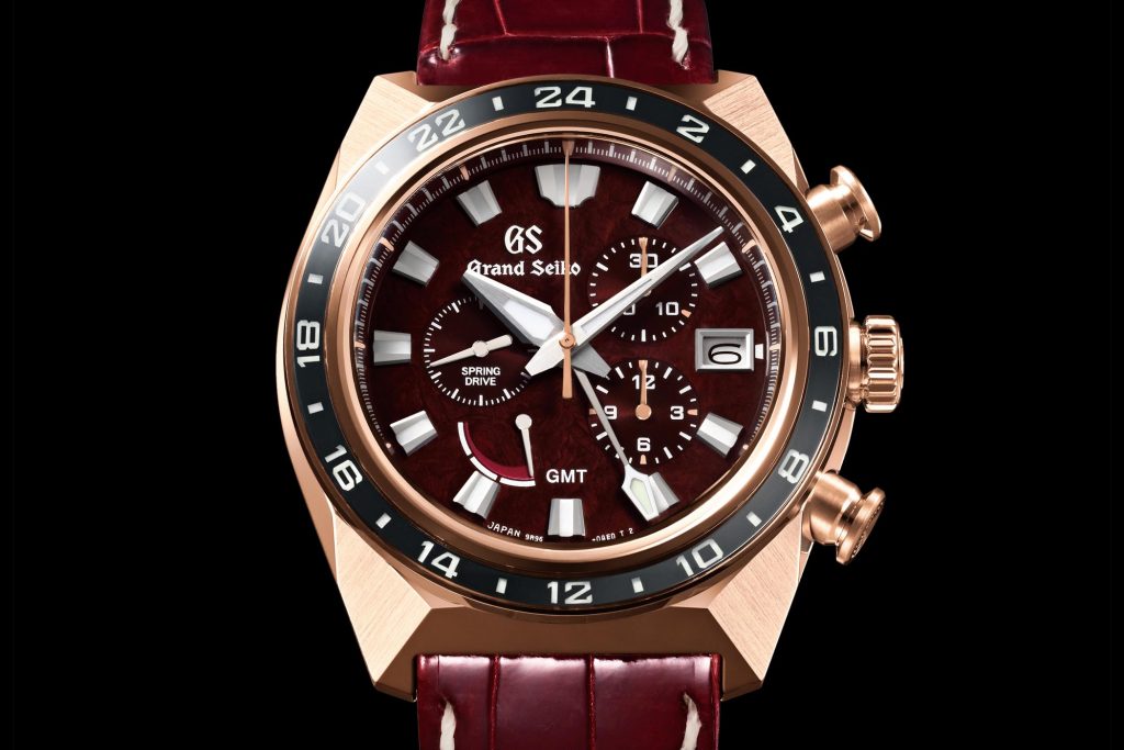 Let’s begin with the most premium and shall we say elegant of the trio, the SBGC230. This watch is a GMT chronograph and features a case made out of 18kt rose gold. The bezel on top of the case features 24-hour markings which helps in tracking a second-time zone using a centrally mounted arrow tipped hand. The dial has been rendered in a nice shade of burgundy, with a nice texture to it which is inspired by a Lion’s mane and really complements the golden tone of the case. Sitting on top of the dial are applied hour markers which along with handset have been filled with luminous material to aid low light visibility. The dial has quite a busy layout but is highly legible with a lot of information to display. There are 3 sub-dials in total (two on the right for recording chronograph hours and minutes and the one at 9 for running seconds), a power reserve indicator between 7 and 8 and a date window at 3. Powering this watch is the brand’s in-house Spring drive chronograph movement Caliber 9R96. It features a column wheel mechanism, offers a power reserve of 72 hours and most importantly is accurate to ±0.5 second per day or ±10 seconds per month. It has been beautifully decorated and can be viewed through the sapphire crystal exhibition case back. The watch is limited to 100 pieces, comes attached to a red alligator strap with white contrast stitching and is priced at EUR 44,800.
