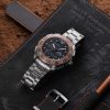 The case of the watch is made of titanium and given a hand polished finish which, thanks to the material it’s made of, will be much less prone to scratching and thus should retain its look for longer. The gold dial is covered in grand feu enamel coloured a deep and vibrant blue.