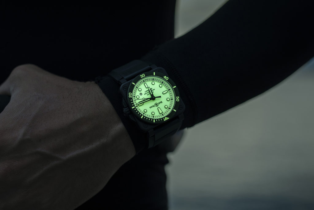 The new Bell & Ross BR 03-92 Diver Full Lum comes attached to a high-quality rubber strap and production is limited to just 999 pieces. The watch will retail for EUR 4.400.