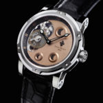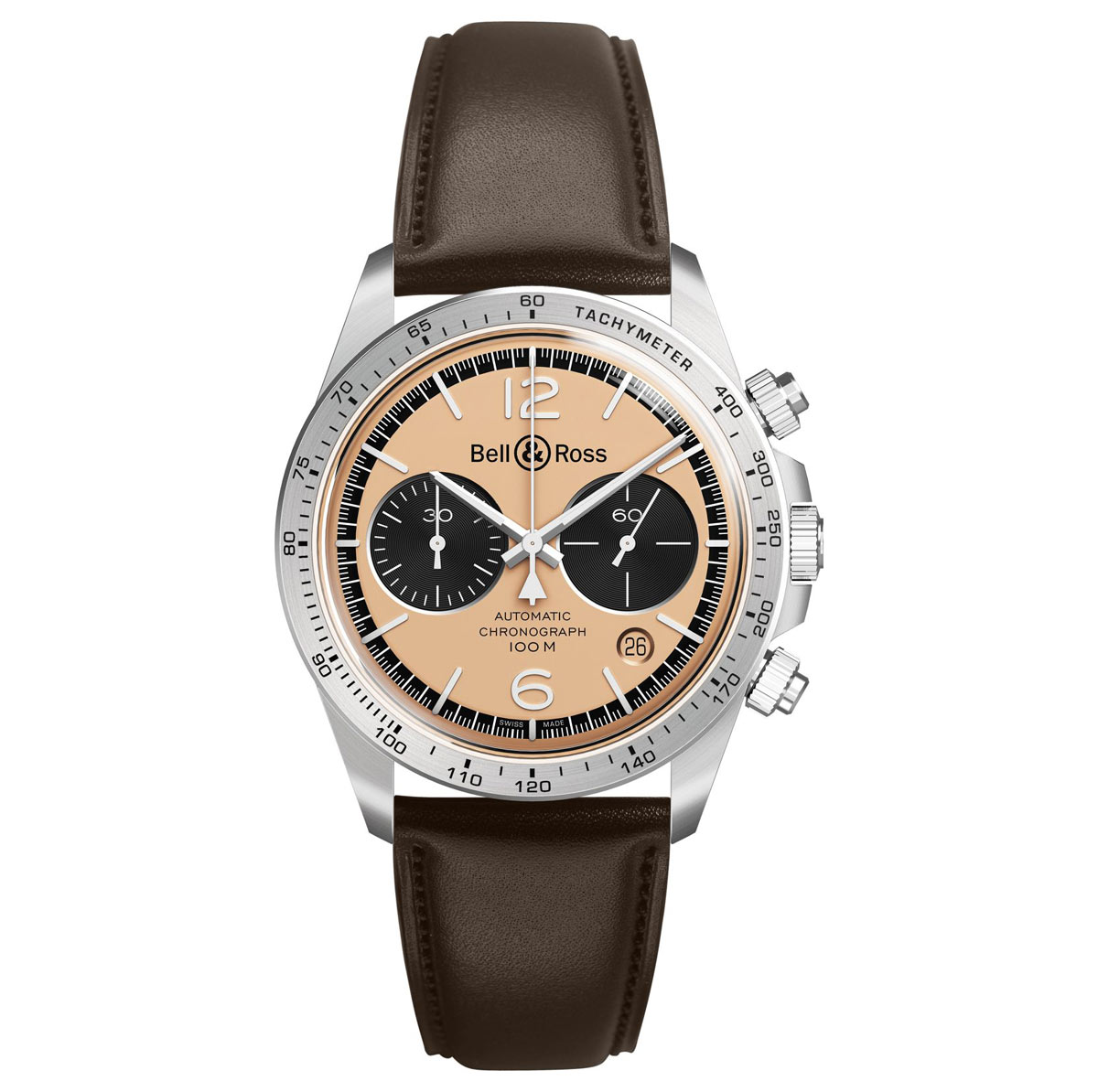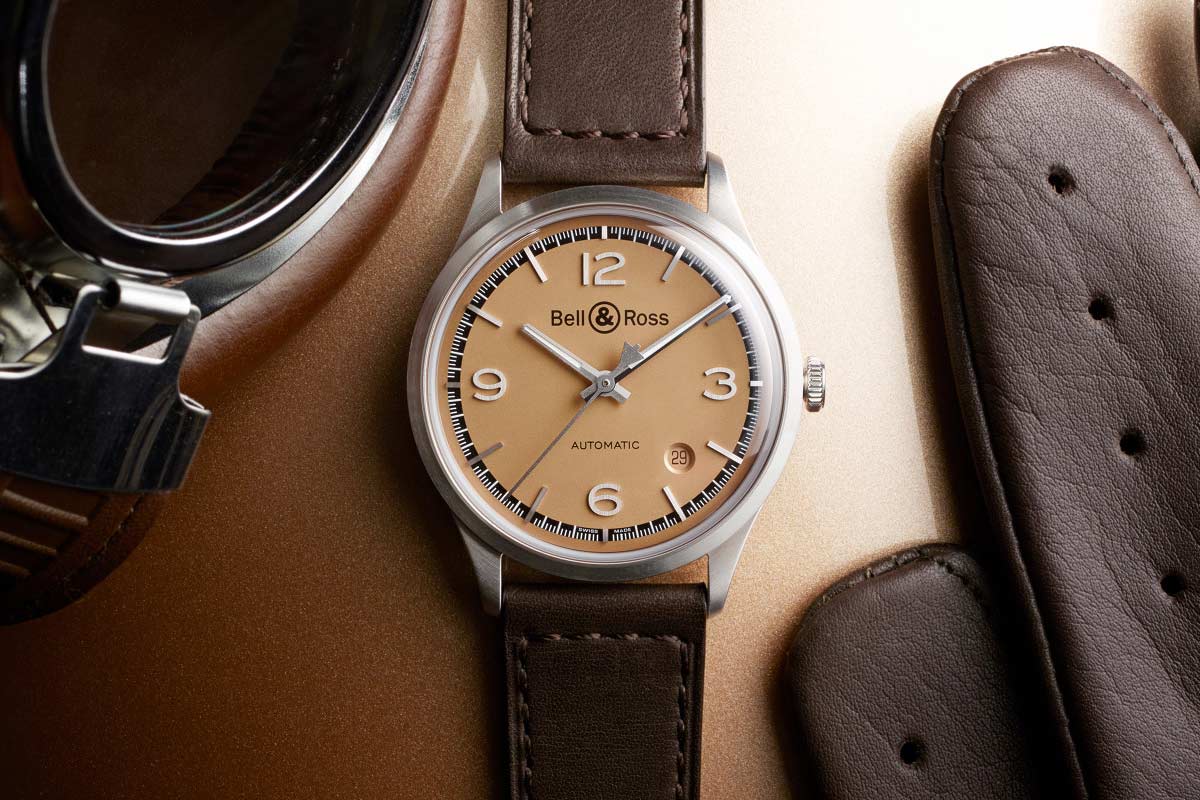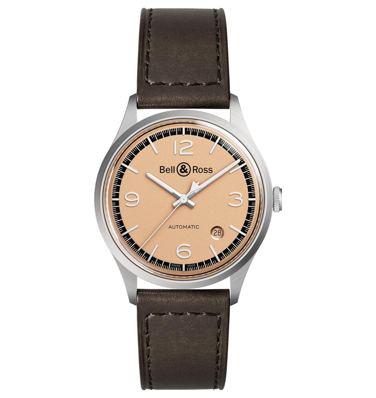 Powering the BR V1–92 Bellytanker is the BR-CAL.302 movement encased in a solid caseback sporting an engraved profile of the B&R Bellytanker. It beats at 28,800 vph and cranks out 41 hours of power reserve. Finally, the watch wears on a dark brown leather strap aged to a vintage appearance. The BR V1–92 Bellytanker is limited to 500 pieces and sells for Euro 2,300 each.