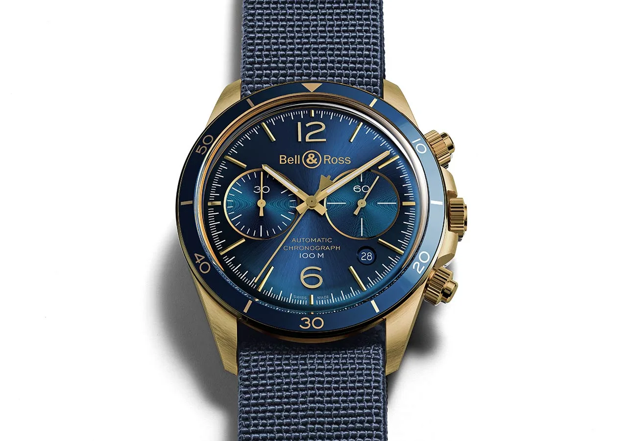 A short while back Bell & Ross introduced the BR V2-92, a handsome sports watch with a military green dial. And now, the brand is making another new addition to its vintage collection. Featuring a case made from bronze, a blue sunburst dial and some nice golden touches, the BR V2-94 BR V2-94 Aéronavale Bronze is a modern retro-inspired sports chronograph.