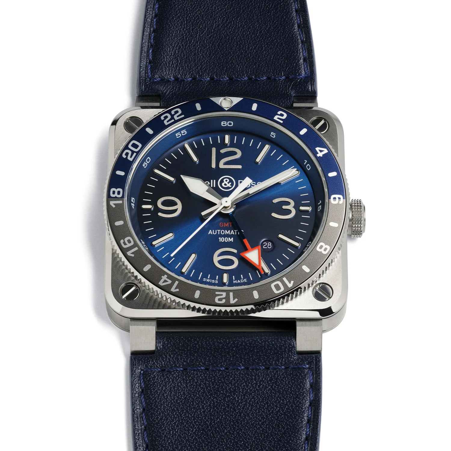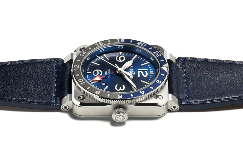 The BR 03-93 GMT Blue comes with a blue calfskin leather strap and a resilient black synthetic fabric strap with a pin buckle. It’s part of Bell & Ross’s permanent collection, it will cost EUR 4,400.