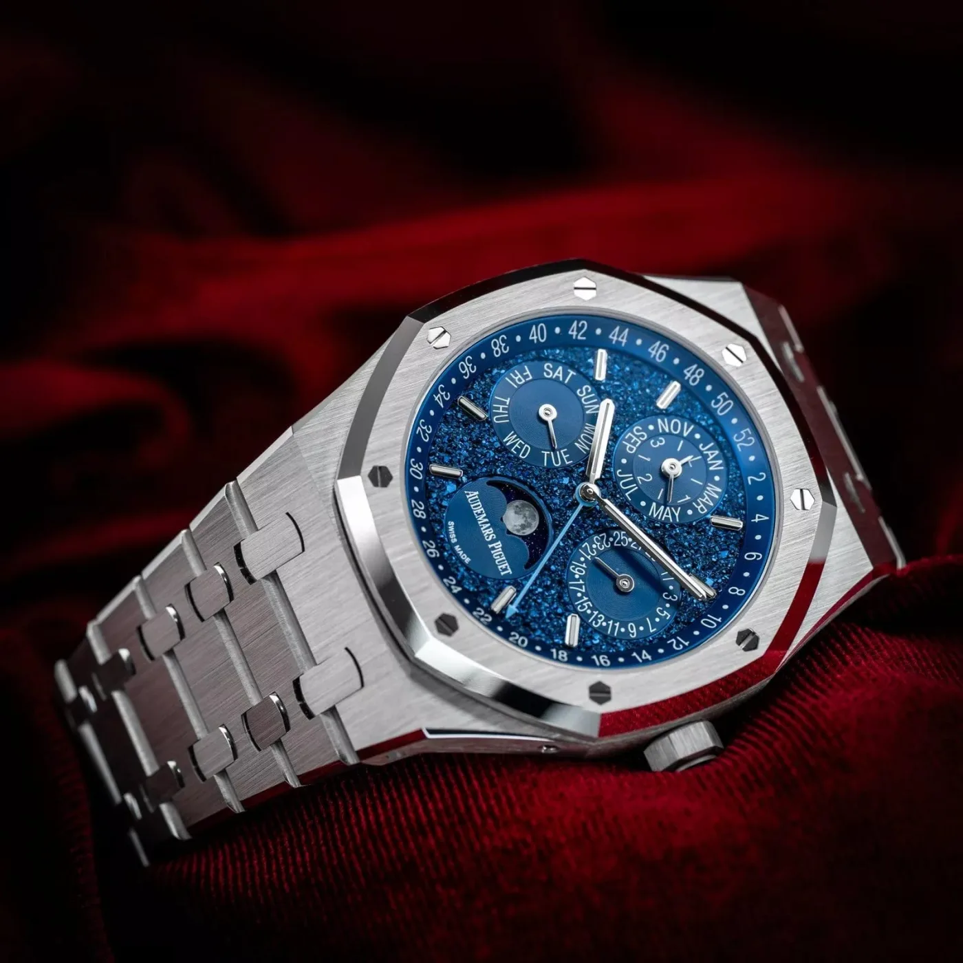 Each piece has a sapphire crystal case back engraved with “Royal Oak Quantième Perpetuel” and “Limited Edition of 200 Pieces,” adding to its rarity.