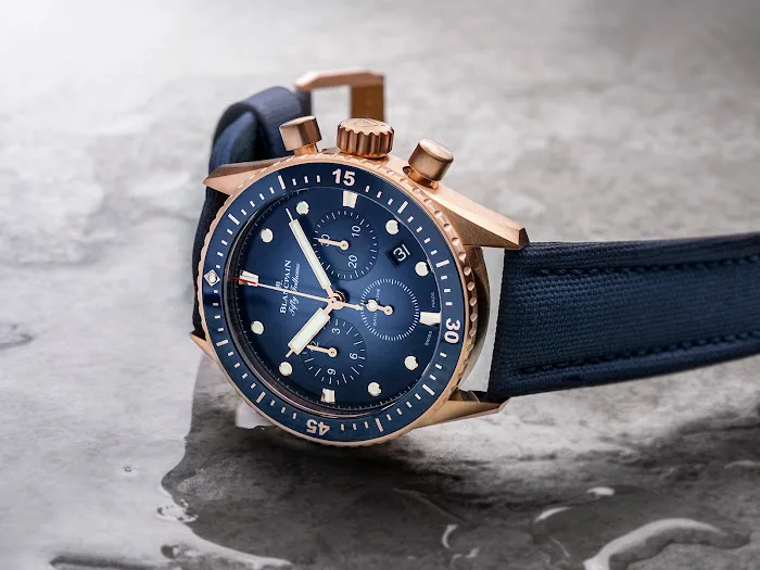 The new Blancpain Bathyscaphe models are available with a matching red gold bracelet or an option for a blue NATO or sailcloth strap. The red gold versions are priced at €61,000, while the strap options are available at €37,200. These watches are now available at Blancpain boutiques and authorized retailers.