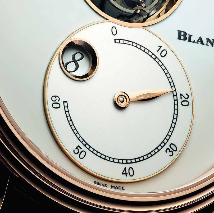 Starting at the top, Blancpain has continued on the work of the flying tourbillon, according to their press material they were the first to put one of these inside a wristwatch. Just like other tourbillons Blancpain makes, theirs look at little different from what we see from the likes of Breguet, which have a cage assembly moving backwards and forwards as well. This one does away with any kind of spinning cage and places the balance wheel at one end of an anchor looking arrangement. This is still classed as a tourbillon, but Blancpain says that because it lacks a heavy cage it needs a little less power to move and is less susceptible to shocks.