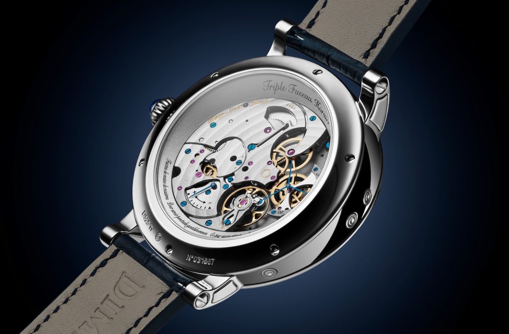 Powering this watch is the calibre 17DM043FPL which is a hand-wound movement that has 37 jewels, operates at a frequency of 3 Hz and offers a massive power reserve of 7 days. The movement has been beautifully decorated, and one can enjoy an unobtrusive view of it through the sapphire crystal exhibition case back.