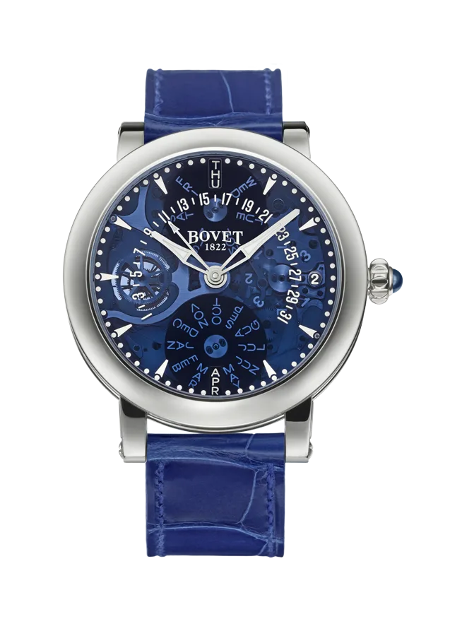 Bovet’s in-house manual-wind Calibre 13DM05-QPR delivers an exemplary 140h power reserve from a single barrel, beating at 21,600vph (3 Hz). Its patented double coaxial seconds mechanism and finely hand-finished components further showcase Bovet’s technical prowess.