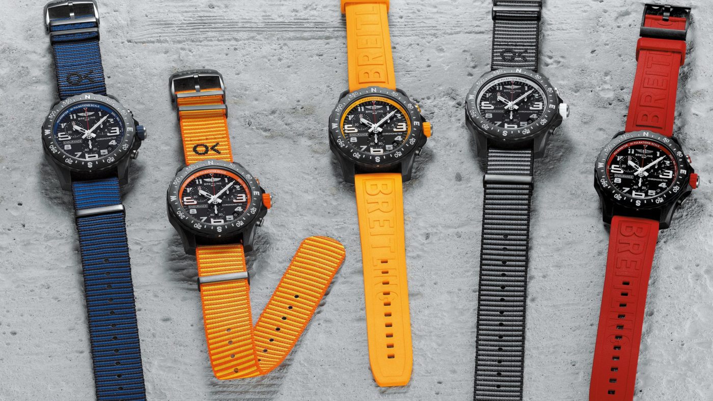 All the watches come in a 44mm x 12.5mm case made of a black composite material called Breitlight, which is a polymer made with carbon fibre for extra rigidity. Expect this to be a lot lighter and less noticeable than an all-steel sports watch. The rotating bezel of the watch features a compass engraving, allowing the watch to be useful out in the wilderness. There’s also a pulsation scale for the chronograph on the inner flange.