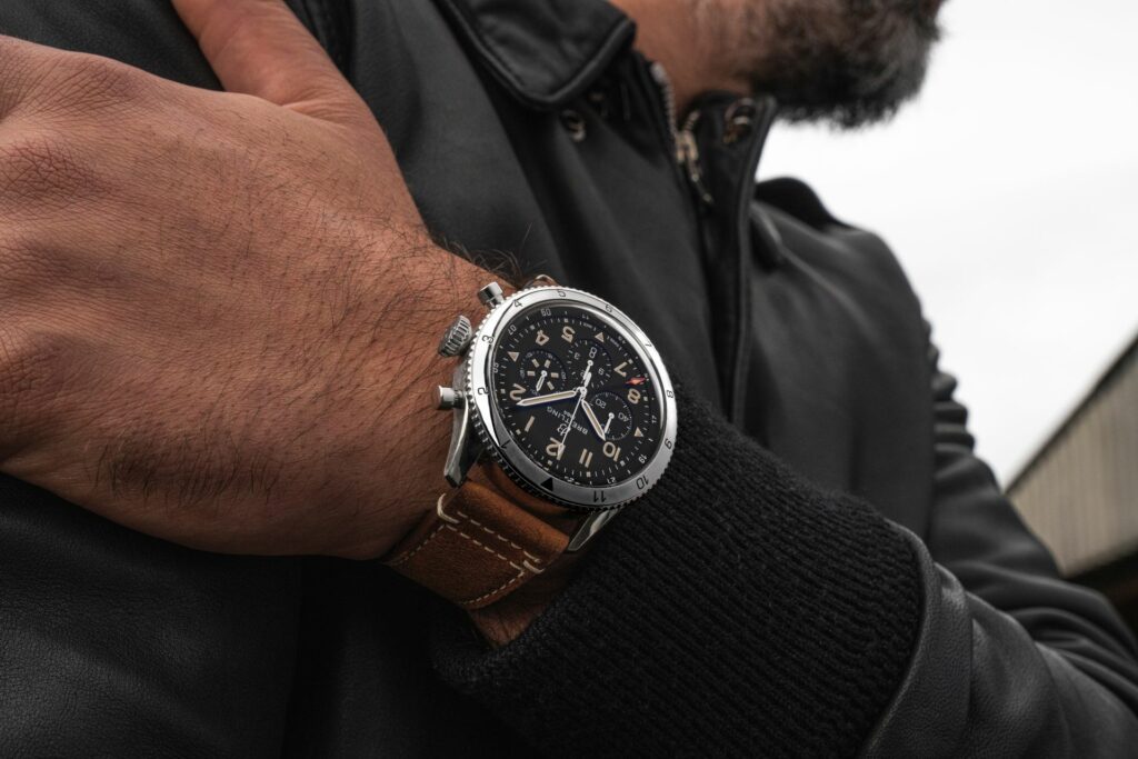 The four new watches are called Super Avi models. Breitling’s usage of the word super denotes a larger cased model. As such, whereas the standard Avi measures 41mm in diameter, these models all come in at 46mm. They’re also very bulky at 15.9mm thick, and you definitely won’t miss one of these. All watch cases are water-resistant to 100m and, with their high levels of polish, are quite similar in profile to Breguet’s old Type XX, at least to my eyes, but without the same level of refinement. They still look good, though.