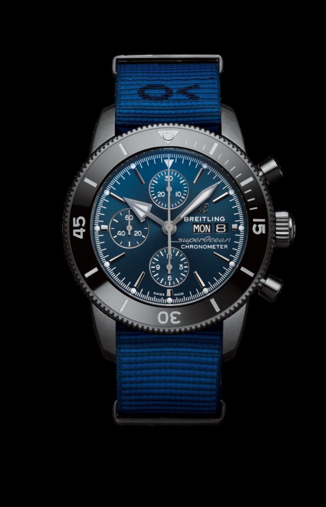 With the Superocean Héritage II Chronograph 44 Outerknown, Breitling is using a sustainable material for the first time in its history. Recycled materials are often looked down by some buyers but in these times, we all need to make an effort and many brands recognize this effort to make a substantial contribution to the planet or else we all suffer in the end. The NATO strap made from ECONYL® yarn is a regenerated nylon material created from nylon waste. There is an abundance of this waste material in our oceans all over the world. The strap comes in a taffeta dark blue design, a nod to one of the clothing company’s products. This color also signifies a strong connection to the oceans. Talking about going green, the watch is also delivered in a packaging made entirely of recycled materials.