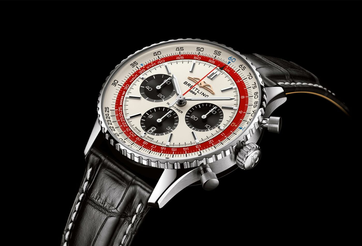 The color scheme on the Navitimer Boeing 747 is reminiscent of the original aircraft, as evidenced by the cream dial with black subdials and red inner slide-rule scale with blue accents. The hour hands, minute hands and indices are treated with Super-LumiNova for easier reading of the dial in low-light conditions. Last year, Breitling celebrated Navitimer’s 70th anniversary by releasing an entire collection of Navitimes in three different sizes and with the return of the AOPA (Aircraft Owners and Pilot’s Association) wings logo. The dial features of the new Navitimer Boeing 747 are similar in this regard, barring the 43mm x 13.7mm fixed size of this stainless steel case in the new model.