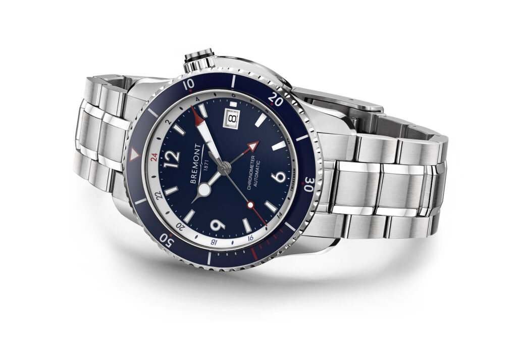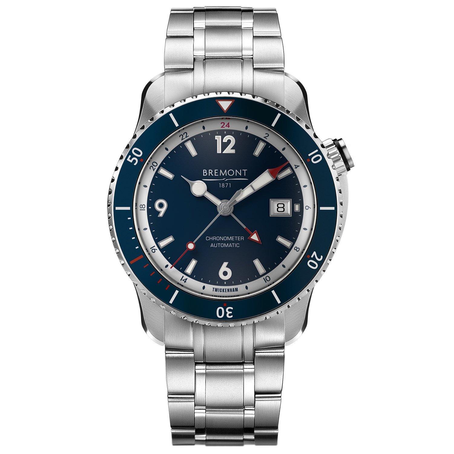 Because it’s perceived as a very manly sport, it’s fitting that Bremont chose a beefy 43mm case that’s similar to the Supermarine diver. The blue bezel and dial are coloured to match the colours of the England Rugby team’s second kit (their primary kit being the iconic white shirt with white shorts and socks). The watch retains its use as a diving piece, despite being devoted to Rugby, with a unidirectional rotating bezel with red markings between 35 and 40 minutes to denote half-time (a Rugby match is 80 minutes).