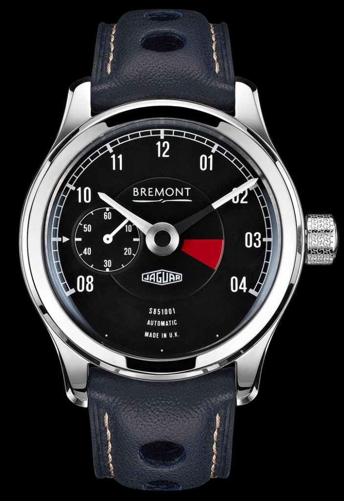 Taking its inspiration directly from the steering wheel of the Jaguar, the winding rotor is an identical copy of the steering wheel down to the 3 tapered spokes and even the logo at its centre. The movement itself is the Bremont BWC/01 Bremont proprietary, self-winding movement, with 25 jewels, and over 50 hour power reserve that you can find the features of in the product specifications section below.